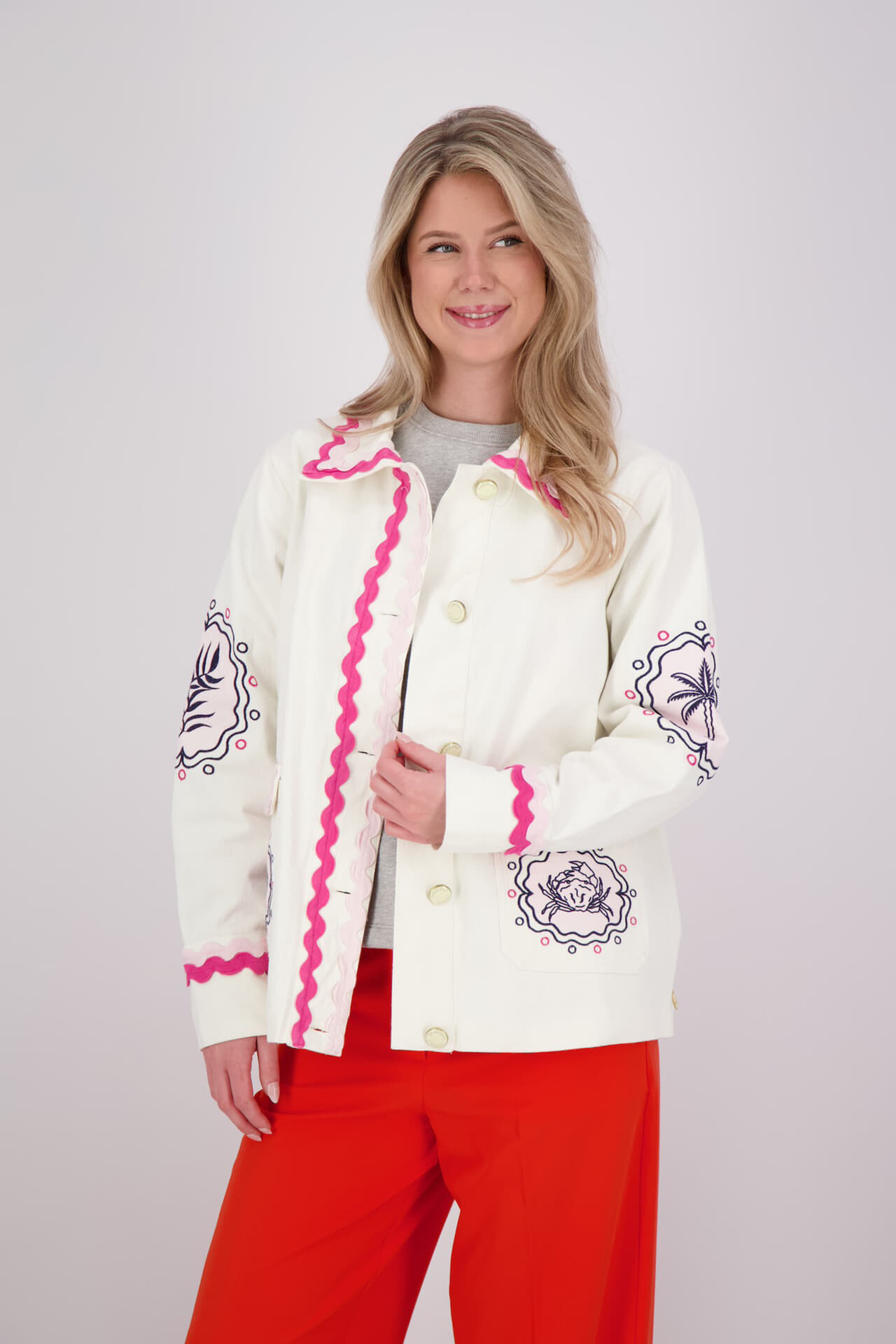 Stijlvolle jas met een grafische print van Fabienne Chapot