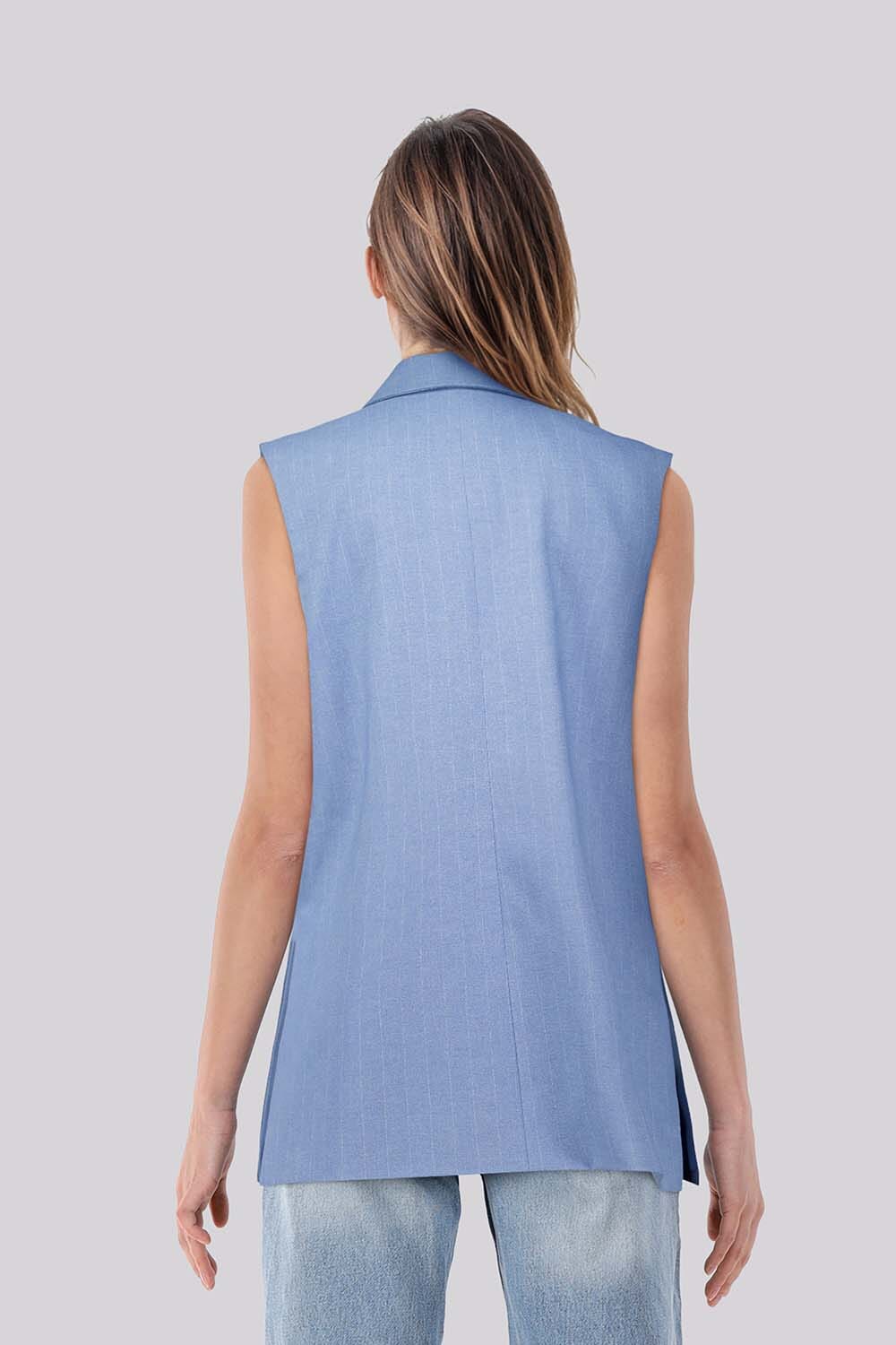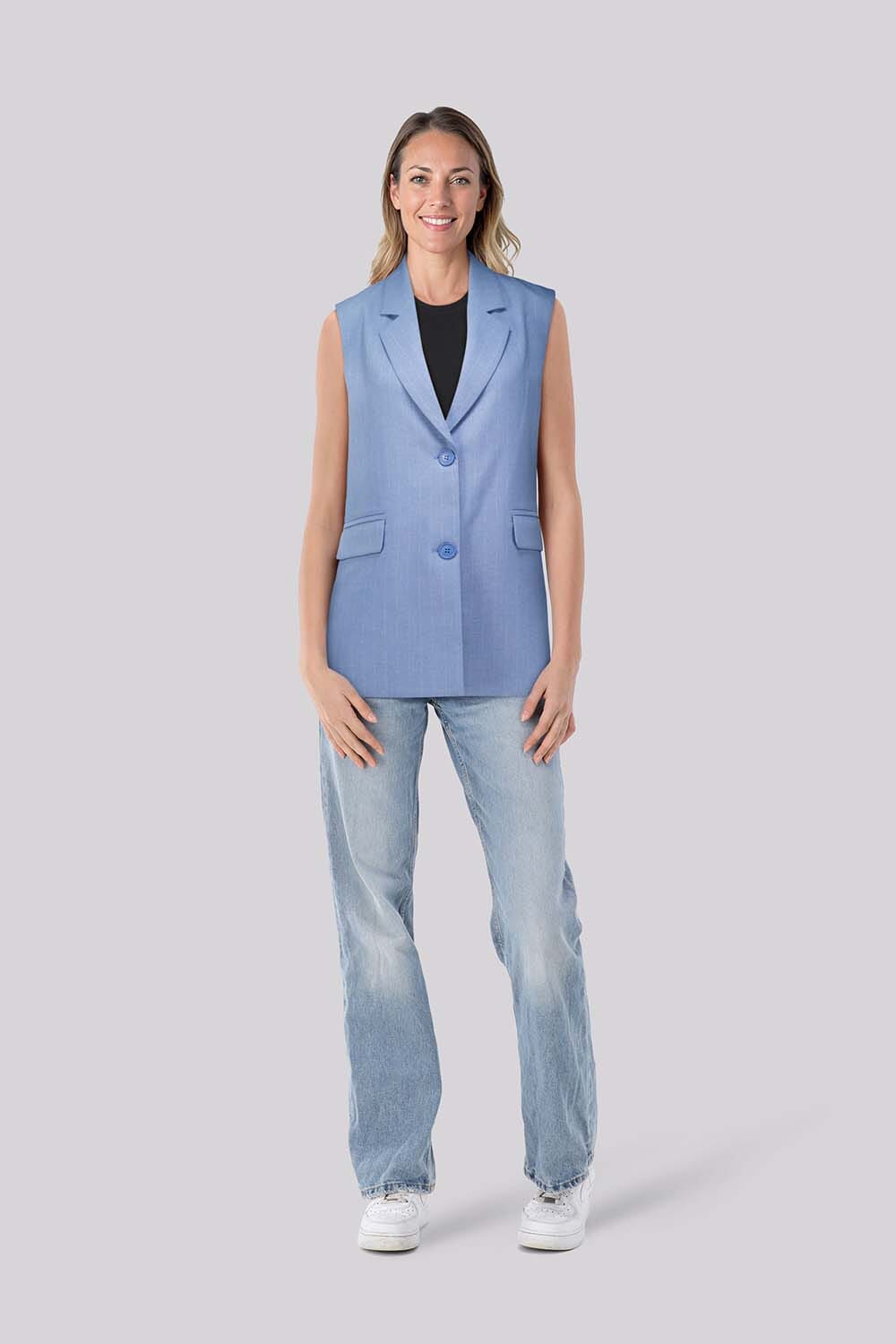 Gilet Jinthe Striped van Studio Anneloes is een verfijnde toevoeging aan elke garderobe. Deze effen blazer heeft een opstaande kraag en knoopsluiting, ideaal voor zakelijke en nette gelegenheden. De gesofisticeerde stijl maakt het een perfecte keuze voor verschillende outfits.