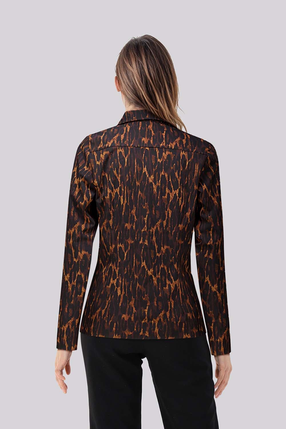 De Blouse Kenia Animal van Studio Anneloes is een trendy blouse met een panterprint. Deze dames blouse heeft een opstaande kraag en knoopsluiting, en biedt een getailleerde pasvorm met lange mouwen. Ideaal voor een trendy gelegenheid.
