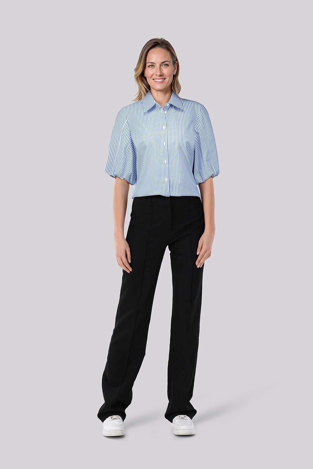 De blouse Poppy Balloon Stripe van Studio Anneloes is een casual dames blouse met een button down kraag, knopen, en een losse pasvorm. Het streepjespatroon en de korte mouwen geven een speels tintje, ideaal voor elke gelegenheid. Ontdek de veelzijdigheid van deze stijlvolle blouse.