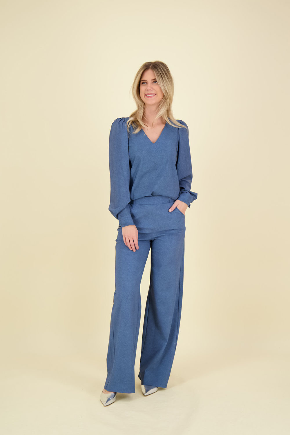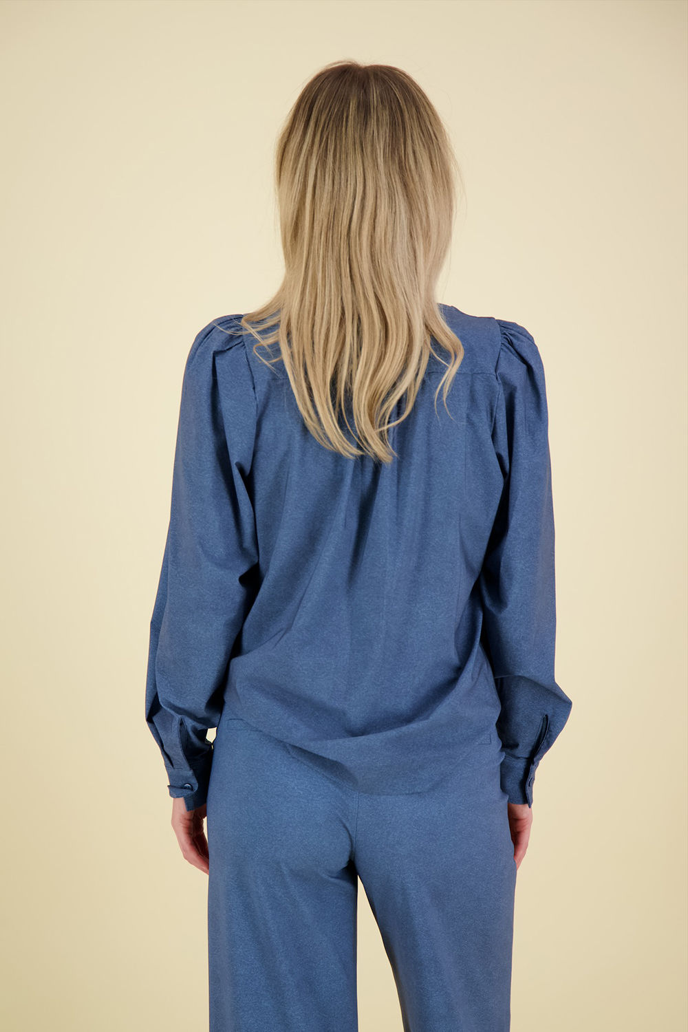 Deze stijlvolle blouse straalt elegantie en comfort uit. Met zijn flatterende pasvorm en zachte stof biedt het een perfecte combinatie van stijl en draagbaarheid. De subtiele V-hals en lange mouwen geven het een moderne touch, ideaal voor zowel casual als formele gelegenheden. Of je nu een dag op kantoor hebt of een avondje uit, deze blouse voegt een vleugje verfijning toe aan je garderobe. Laat je inspireren door de veelzijdigheid en maak van elke outfit een modieuze statement.