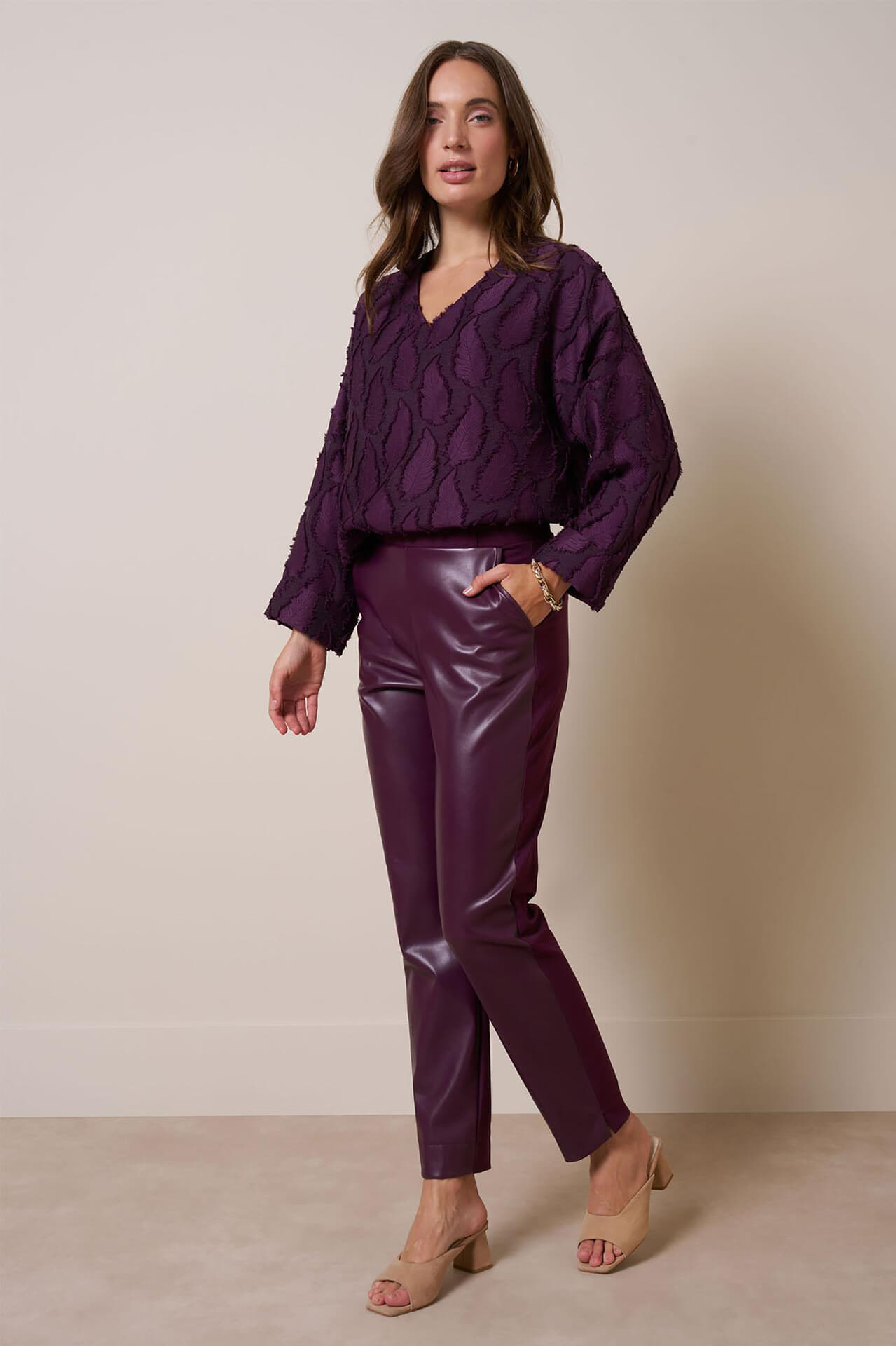 De Pantalon Anne Kunstleer van Studio Anneloes is een stijlvolle pantalon met een verborgen zijritssluiting en een normale taille. Het effen patroon en slimfit pasvorm maken het een veelzijdig kledingstuk. Perfect voor elke gelegenheid.