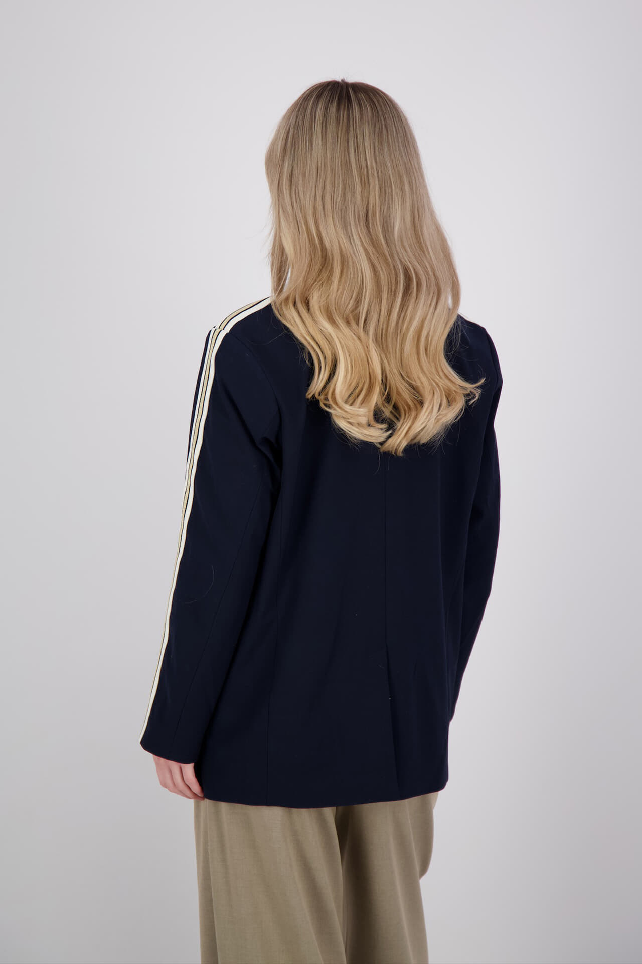 De Blazer with tape Viscose blend van Summum is een stijlvolle blazer met een regular fit en reverskraag. Voorzien van zakken op de voorzijde, knopen als sluiting, en lange mouwen met manchetten. Ideaal voor zowel zakelijke als casual gelegenheden.