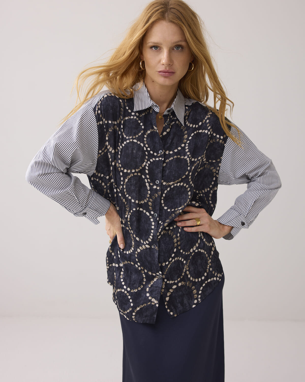 De Blouse All Over Print van Summum is een trendy dames blouse met een button down kraag en lange mouwen. Het unieke all-over patroon zorgt voor een stijlvolle uitstraling. Ideaal voor diverse gelegenheden, biedt deze blouse een combinatie van comfort en elegantie.