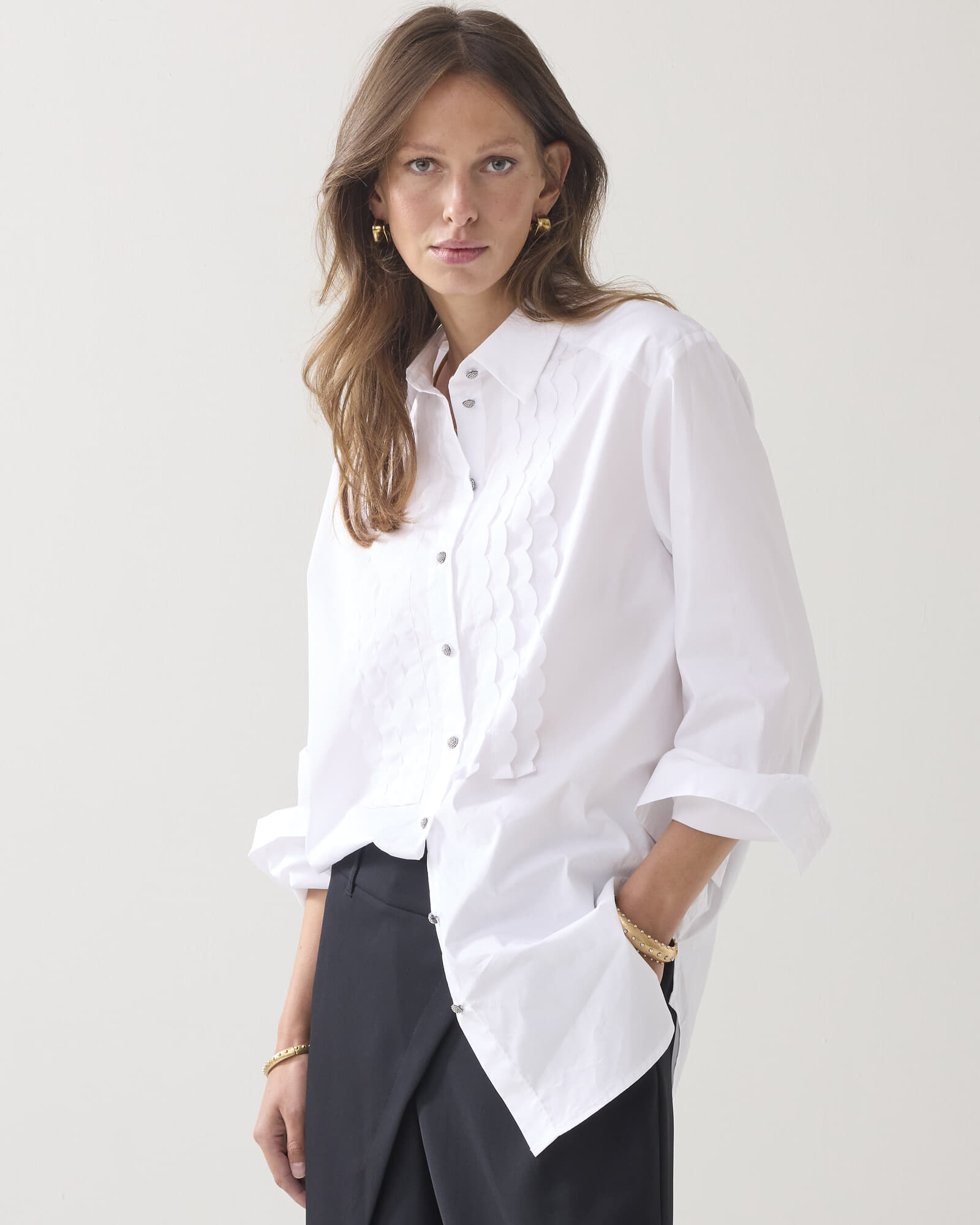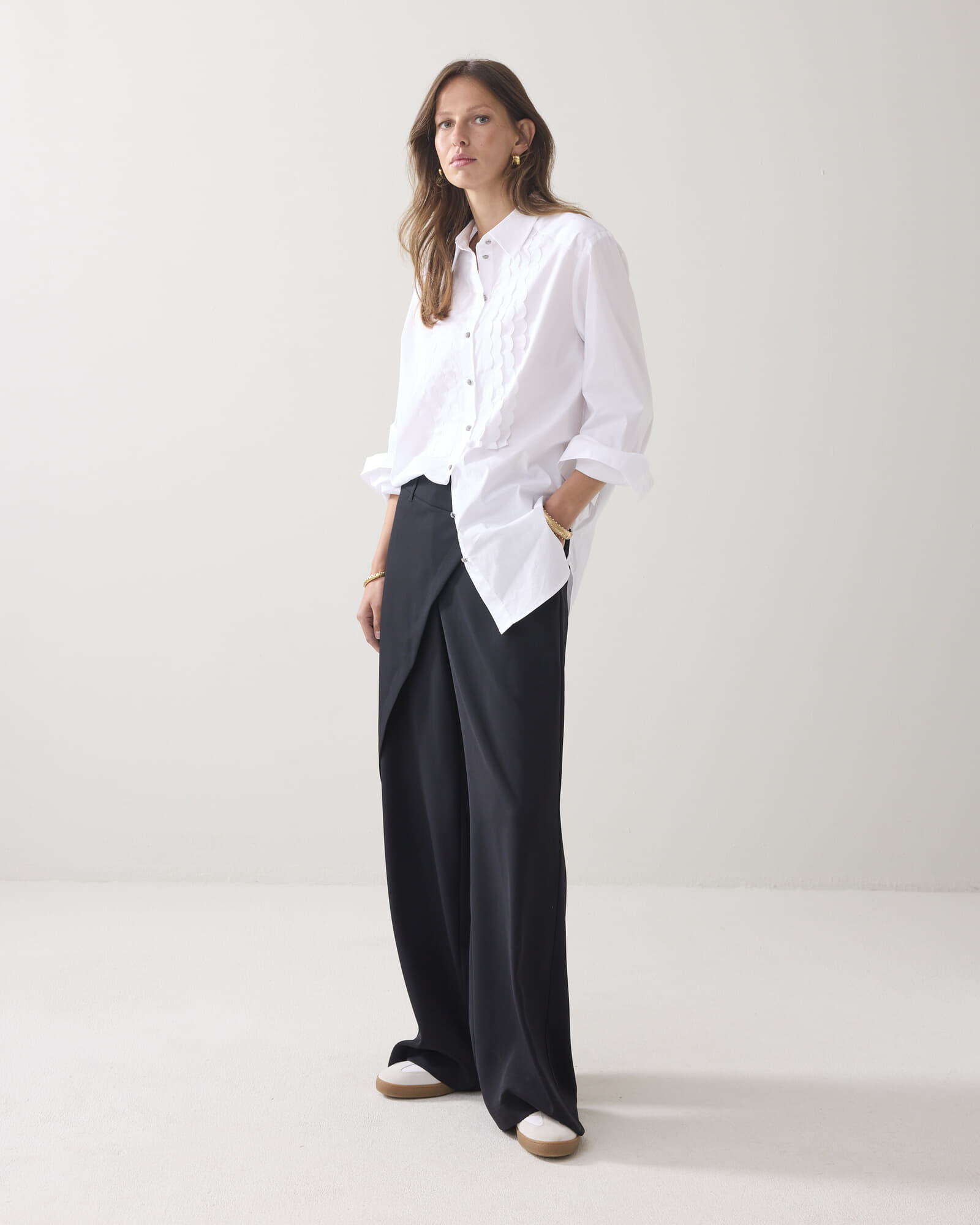 De Blouse Party poplin van Summum is een stijlvol businessoverhemd met een opstaande kraag en knoopsluiting. Het effen patroon en de lange mouwen maken het tot een perfecte keuze voor een professionele uitstraling. Deze blouse combineert eenvoud met elegantie en functionaliteit.