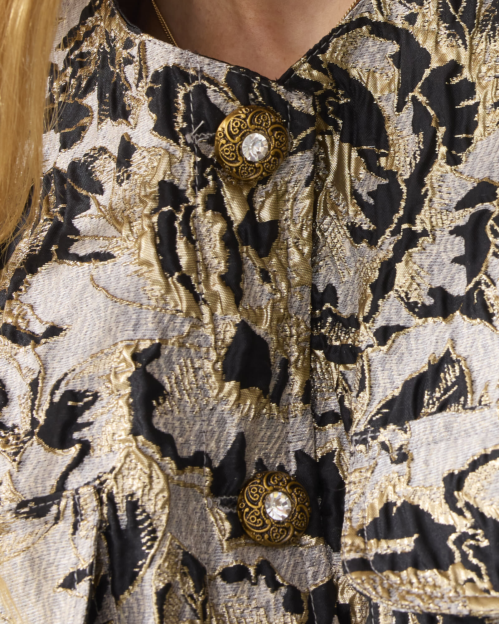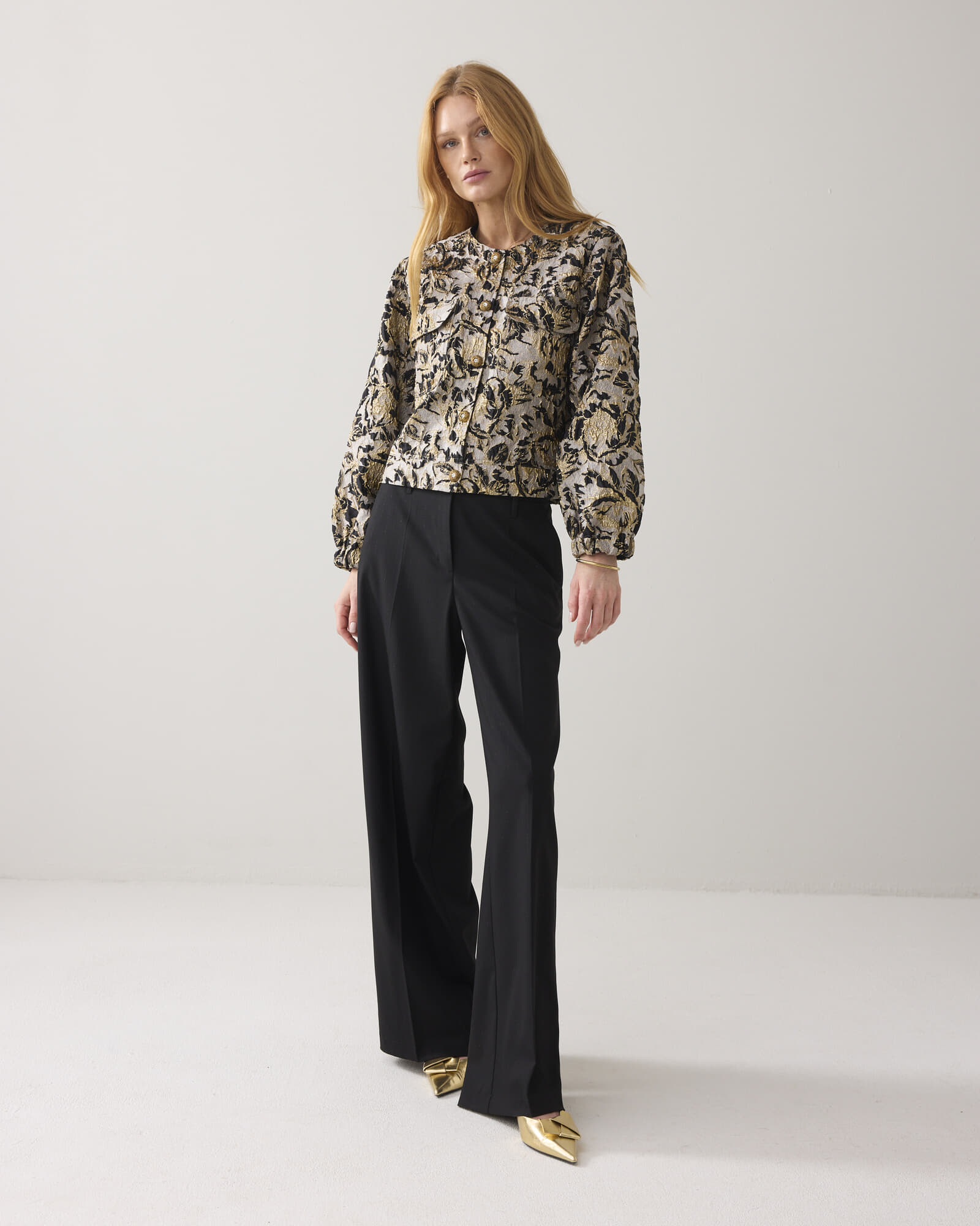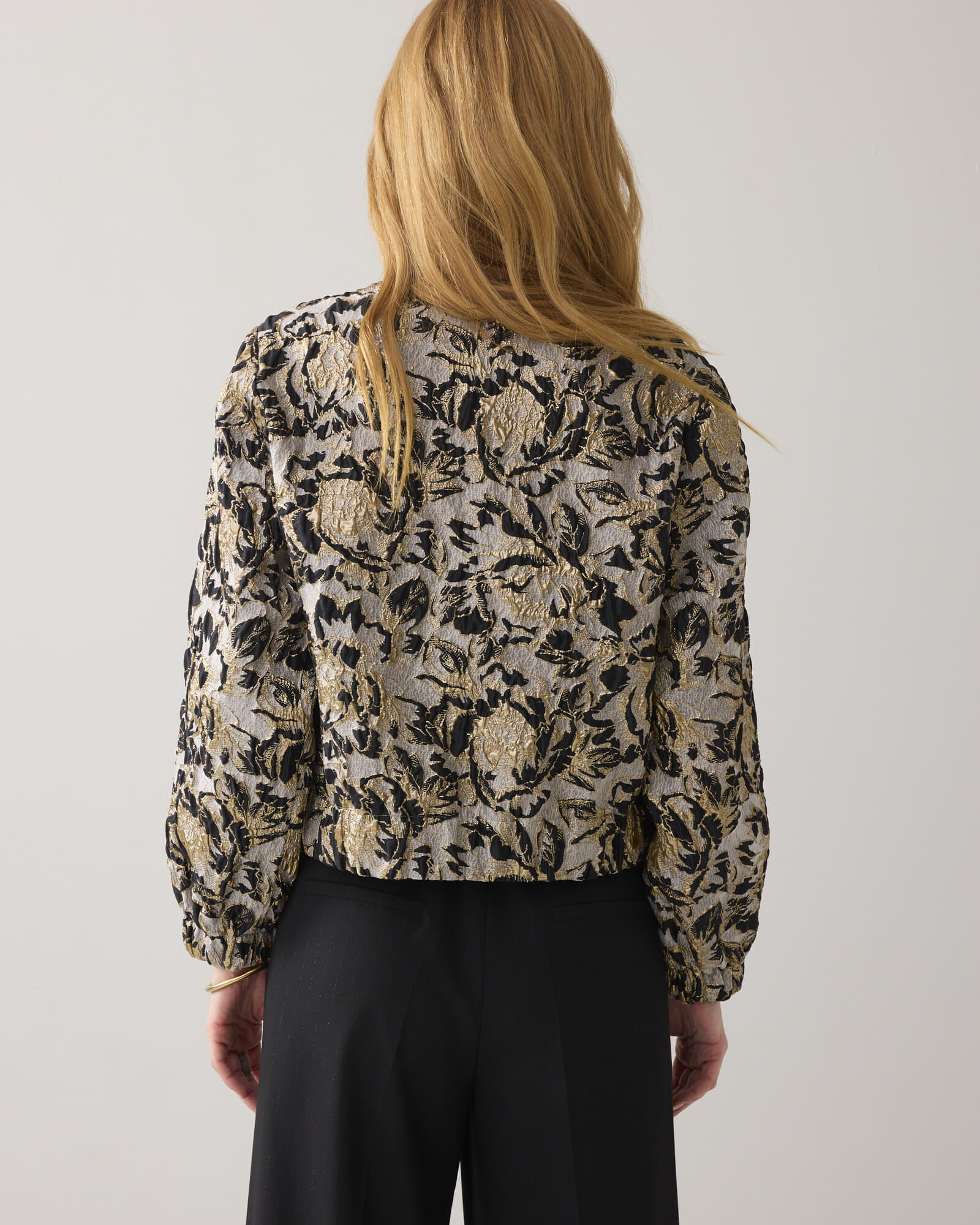 De Bomberjas Jacquard van Summum is een stijlvolle toevoeging aan de dames blazers collectie. Met een bohemian stijl, kraagloos ontwerp en bloemenpatroon, biedt deze boxy fit jas met lange mouwen en knopen een casual en veelzijdige uitstraling voor elke gelegenheid.