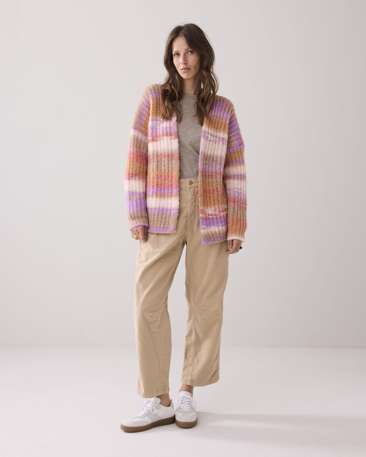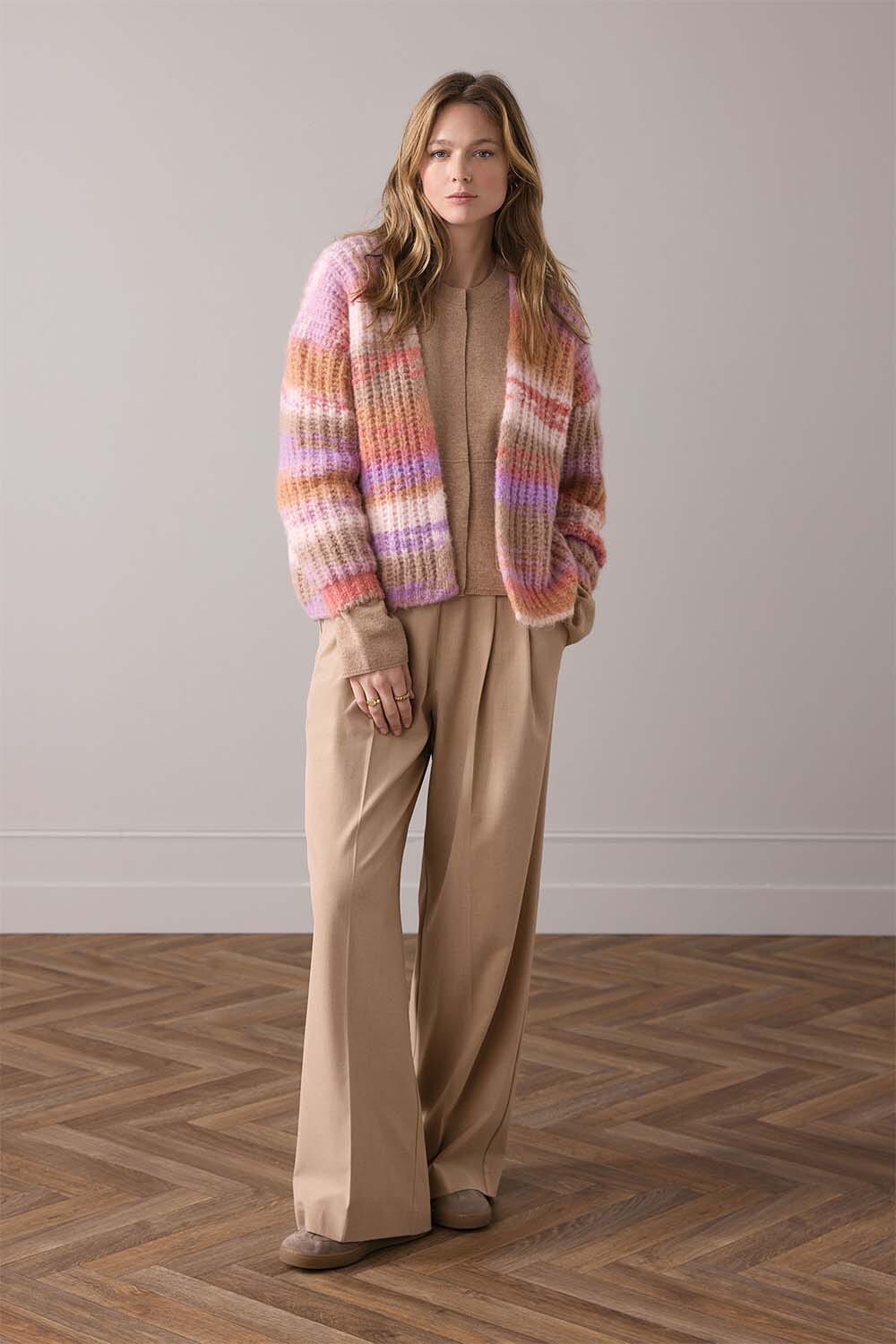 Het Gebreid Vest Cushy Wol Blend van Summum is een casual dames vest met een losse pasvorm en lange mouwen. Dit effen vest combineert stijl en comfort perfect voor elke gelegenheid.