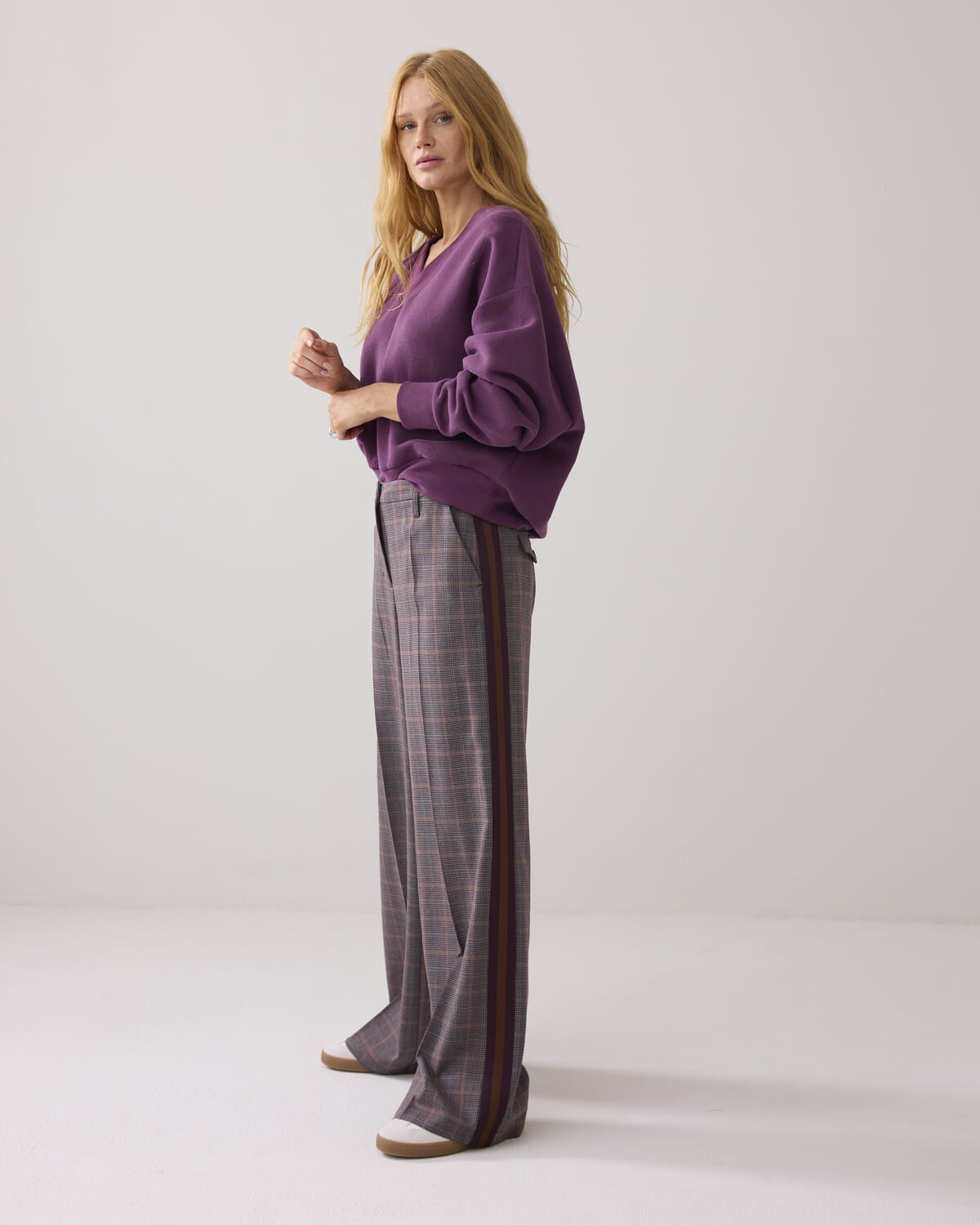 De Pantalon Check van Summum is een dames pantalon met een stijlvolle ruit en een losse pasvorm, ideaal voor nette gelegenheden. De verfijnde look maakt deze pantalon perfect voor diverse outfits, waardoor het een veelzijdige keuze is voor de moderne garderobe.