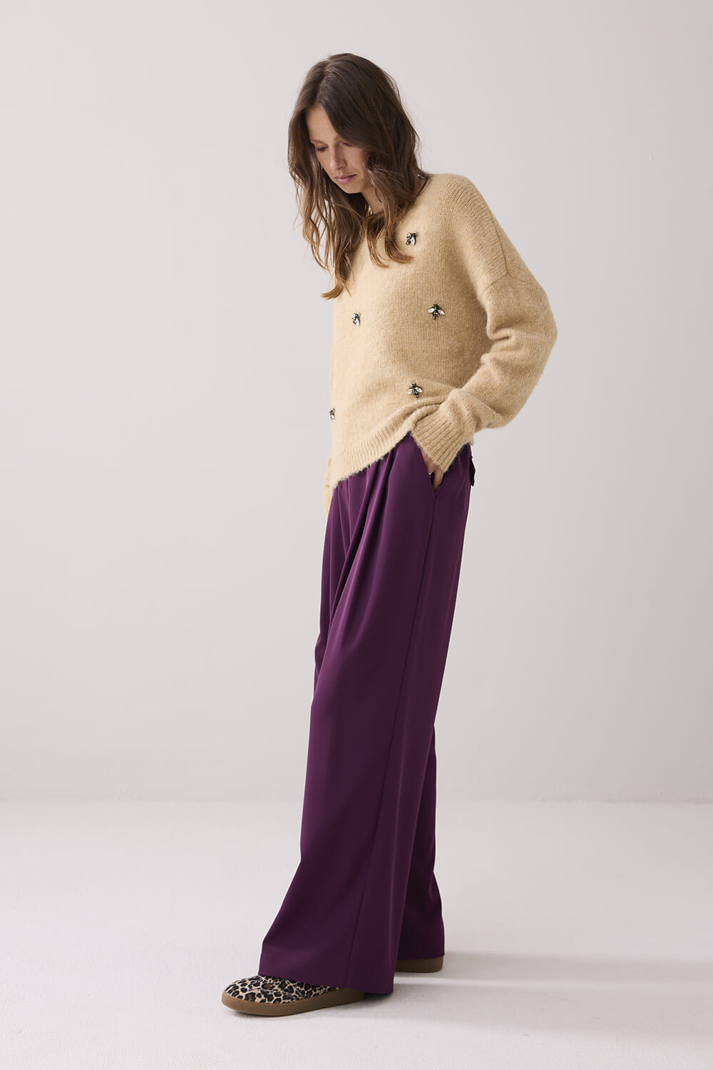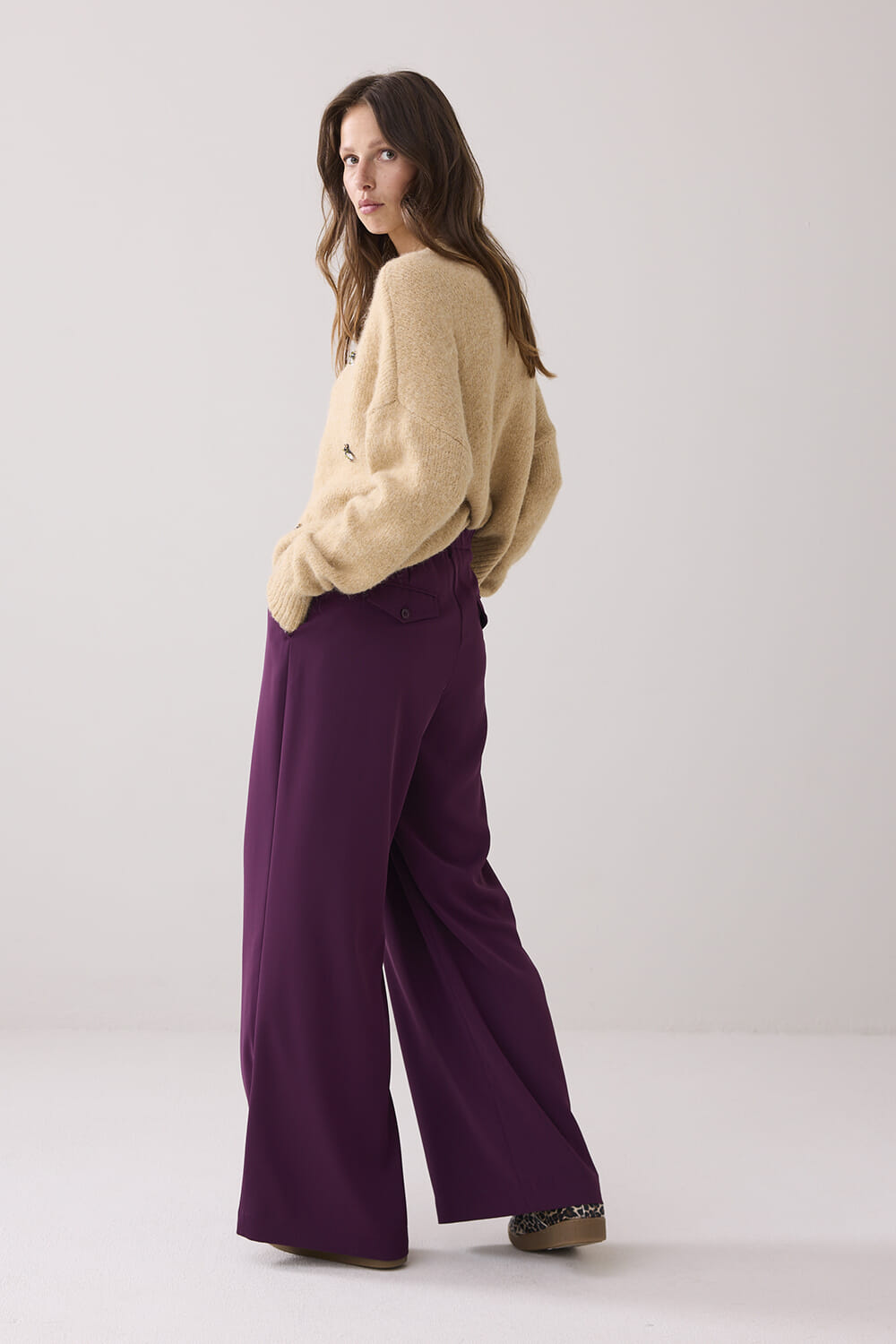 De Pantalon Fluid van Summum is een stijlvolle dames pantalon met een verfijnde uitstraling. Deze pantalon heeft een normale taille, wijde pijpen en een losse pasvorm, gecombineerd met een knoop- en ritssluiting, wat zorgt voor comfort en elegantie in elke situatie.