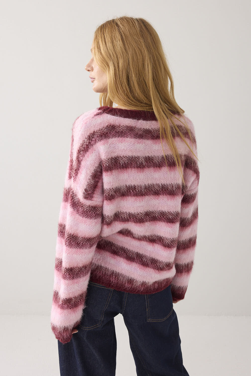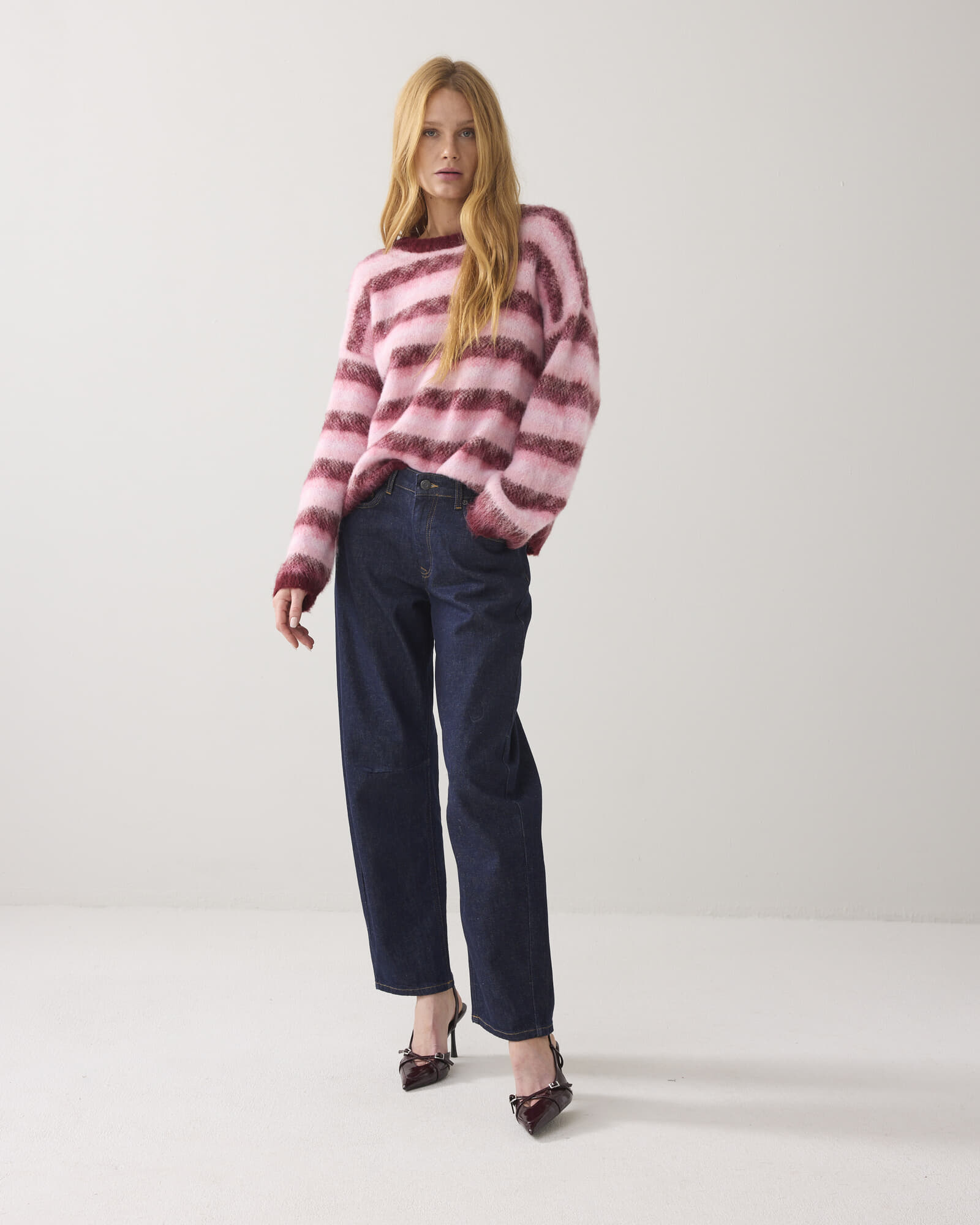 De Sweater Brushed Alpaca van Summum is een casual dames trui met een opvallend streep patroon. Voorzien van ribgebreide mouwboorden, een ronde hals en lange mouwen, biedt deze trui een comfortabele regular fit. Ideaal voor een ontspannen, stijlvolle look.