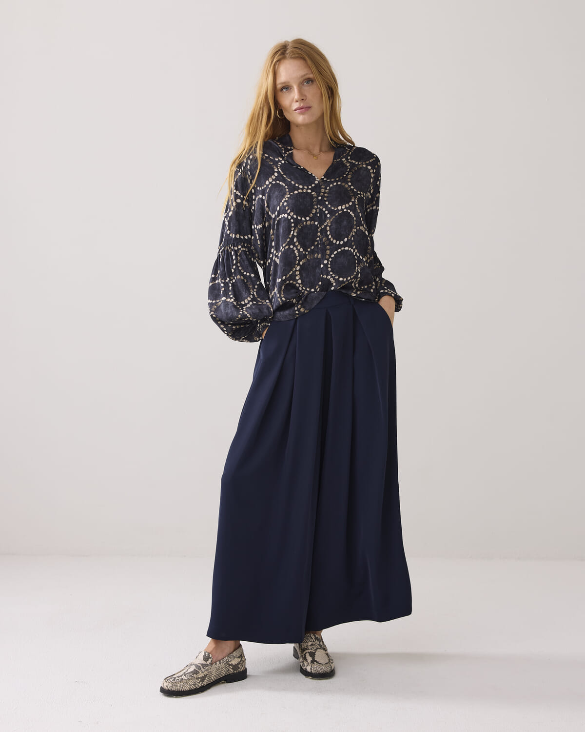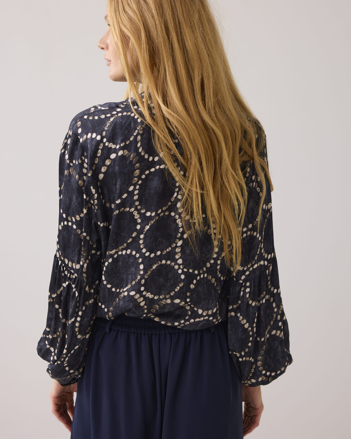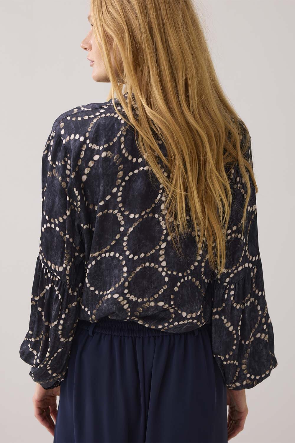 De Top All Over Print van Summum is een trendy longsleeve met een bohemian en verfijnde stijl. Uitgerust met een spreidkraag, brede manchetten, een grafisch patroon en een V-hals, biedt deze top een losse pasvorm en lange mouwen voor een stijlvolle uitstraling.