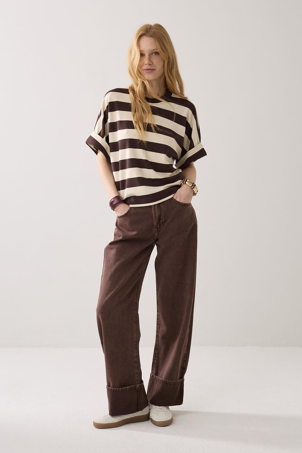 De Top Big stripe heavy jersey van Summum is een casual dames top met korte mouw en een ronde halslijn. Het gestreepte patroon geeft deze top een eigentijdse uitstraling, perfect voor informele gelegenheden. Geniet van stijl en comfort in dit veelzijdige kledingstuk.