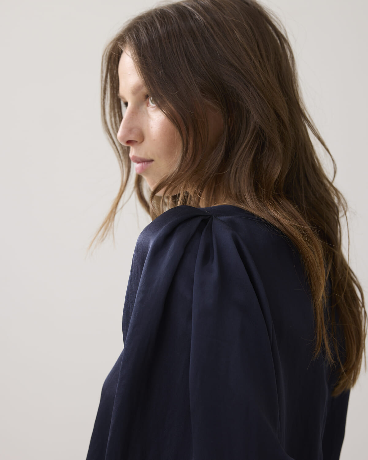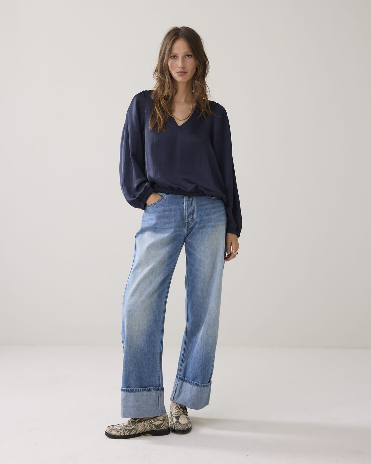 De Top Heavy Silky Touch van Summum is een verfijnde dames longsleeve met een losse pasvorm. Het trendy overhemd heeft een split hals en V-hals, lange mouwen met elastische manchetten en een effen patroon. Ideaal voor een nette gelegenheid.