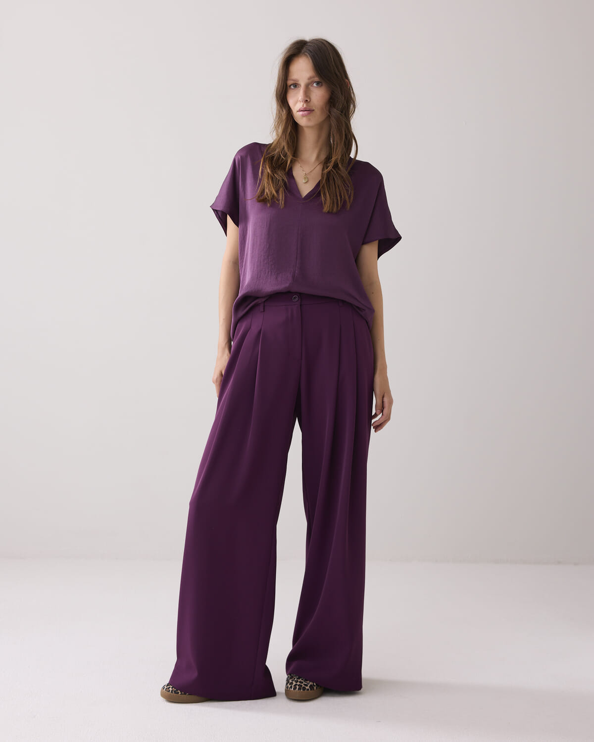 De Top Silky Touch van Summum is een stijlvolle dames top korte mouw met een minimalistische uitstraling. De V-hals en losse pasvorm zorgen voor een comfortabele en modieuze look. Deze effen top met lange mouwen is ideaal voor casual gelegenheden en makkelijk te combineren.