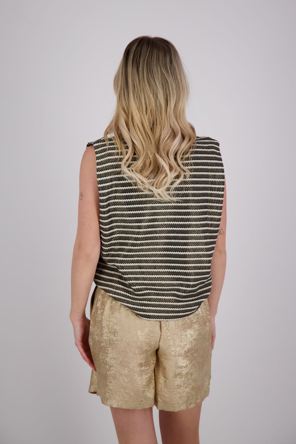 De Top Stripe van Summum is een stijlvolle dames top mouwloos, ideaal voor casual gelegenheden. Gemaakt met een minimalistisch design en een ronde halslijn, biedt deze top een regular pasvorm met streep patroon. Beschikbaar met geen mouw of lange mouw opties.