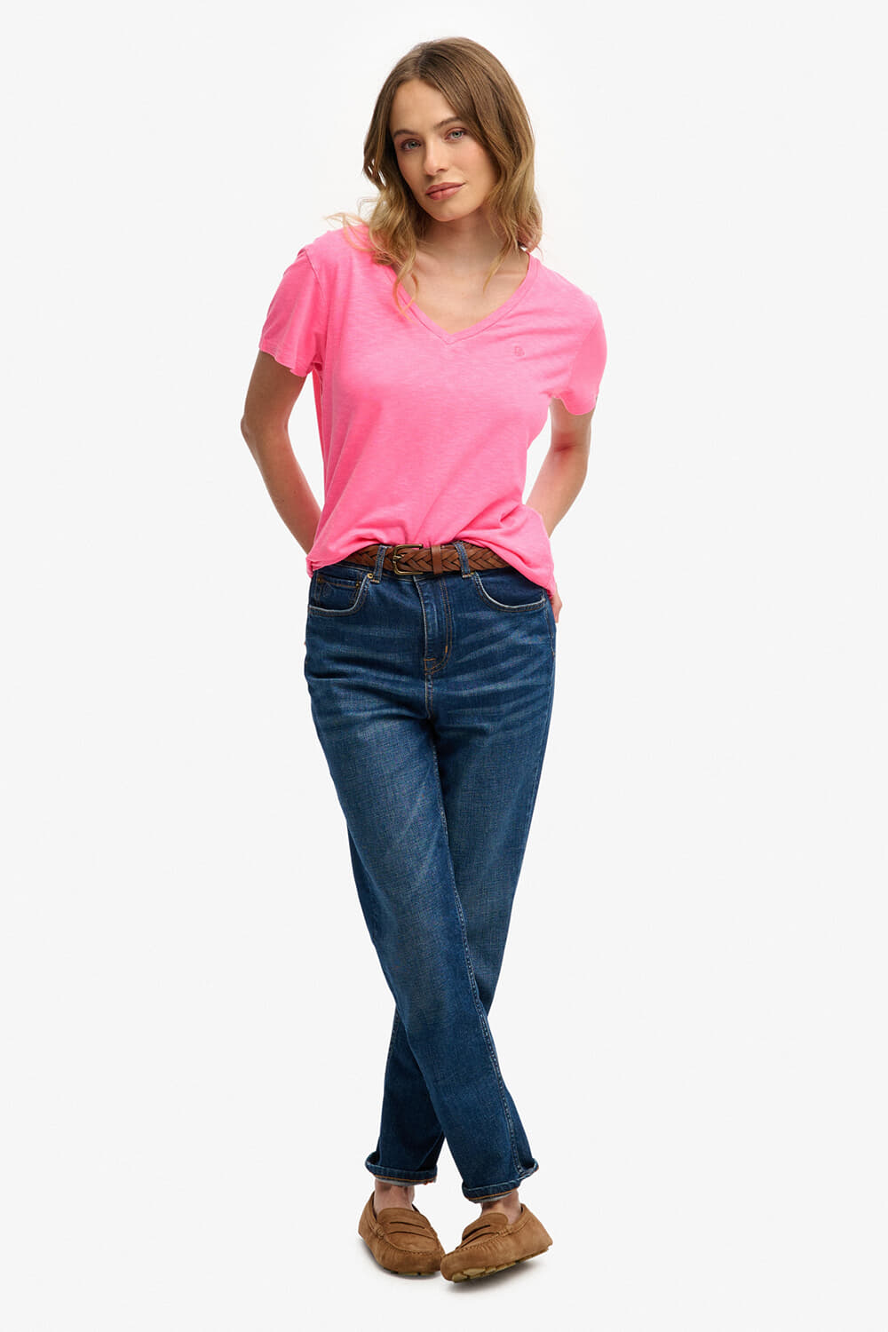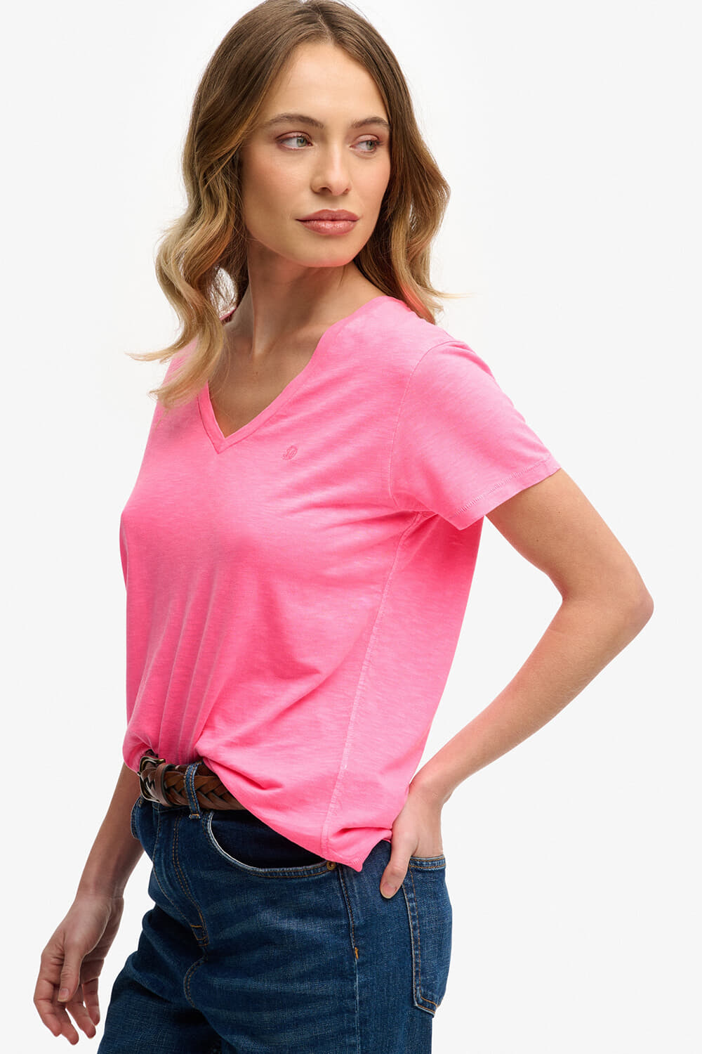 T-shirt Slub van Superdry is een casual dames T-shirt met een V-hals en korte mouwen. Het effen patroon maakt het veelzijdig voor elke gelegenheid. Gemaakt van hoogwaardige materialen, biedt het comfort en stijl, perfect voor een ontspannen dagje uit.