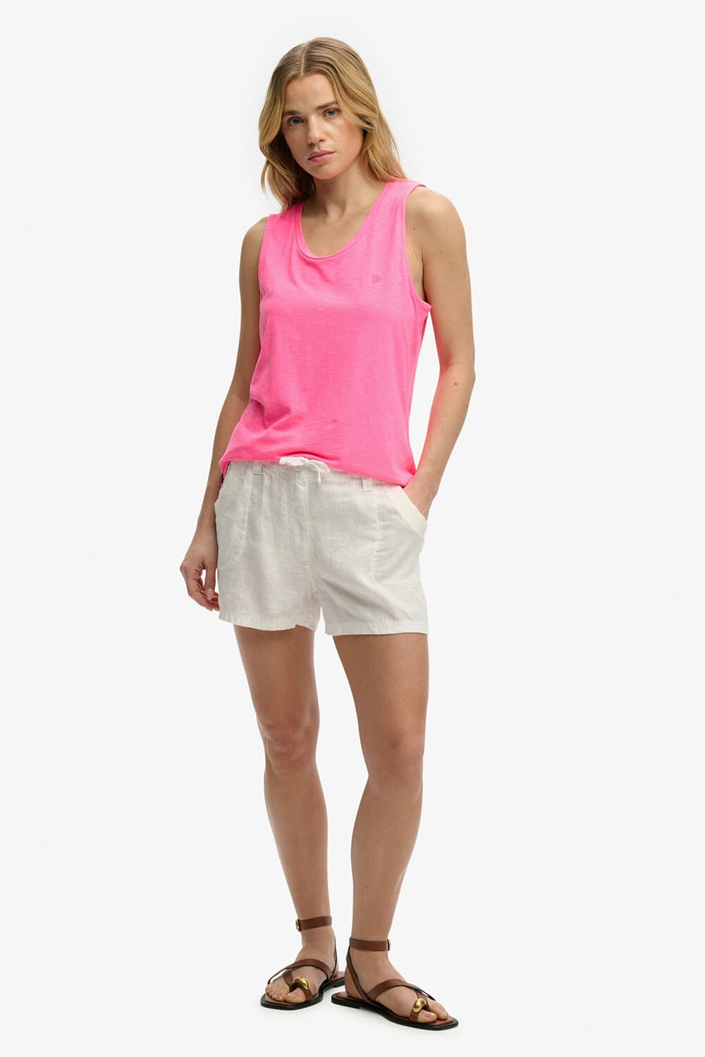 De Tanktop Scoop Neck van Superdry is een casual dames top mouwloos met een ronde halslijn en een regular pasvorm. De effen roze kleur zorgt voor een frisse uitstraling. Perfect voor een casual gelegenheid, biedt deze top comfort en stijl zonder mouwen.