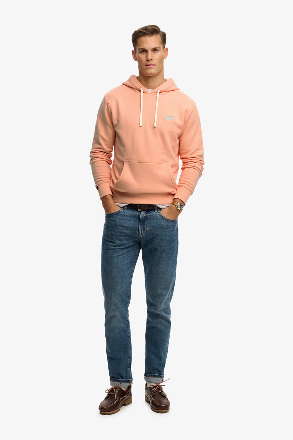 De Hoodie Essential Logo van Superdry is een casual heren hoodie met een capuchon en koord, voorzien van zakken aan de voorzijde. De lange mouwen zijn afgewerkt met ribgebreide boorden. Deze regular fit hoodie heeft een effen patroon en is ideaal voor een relaxte stijl.