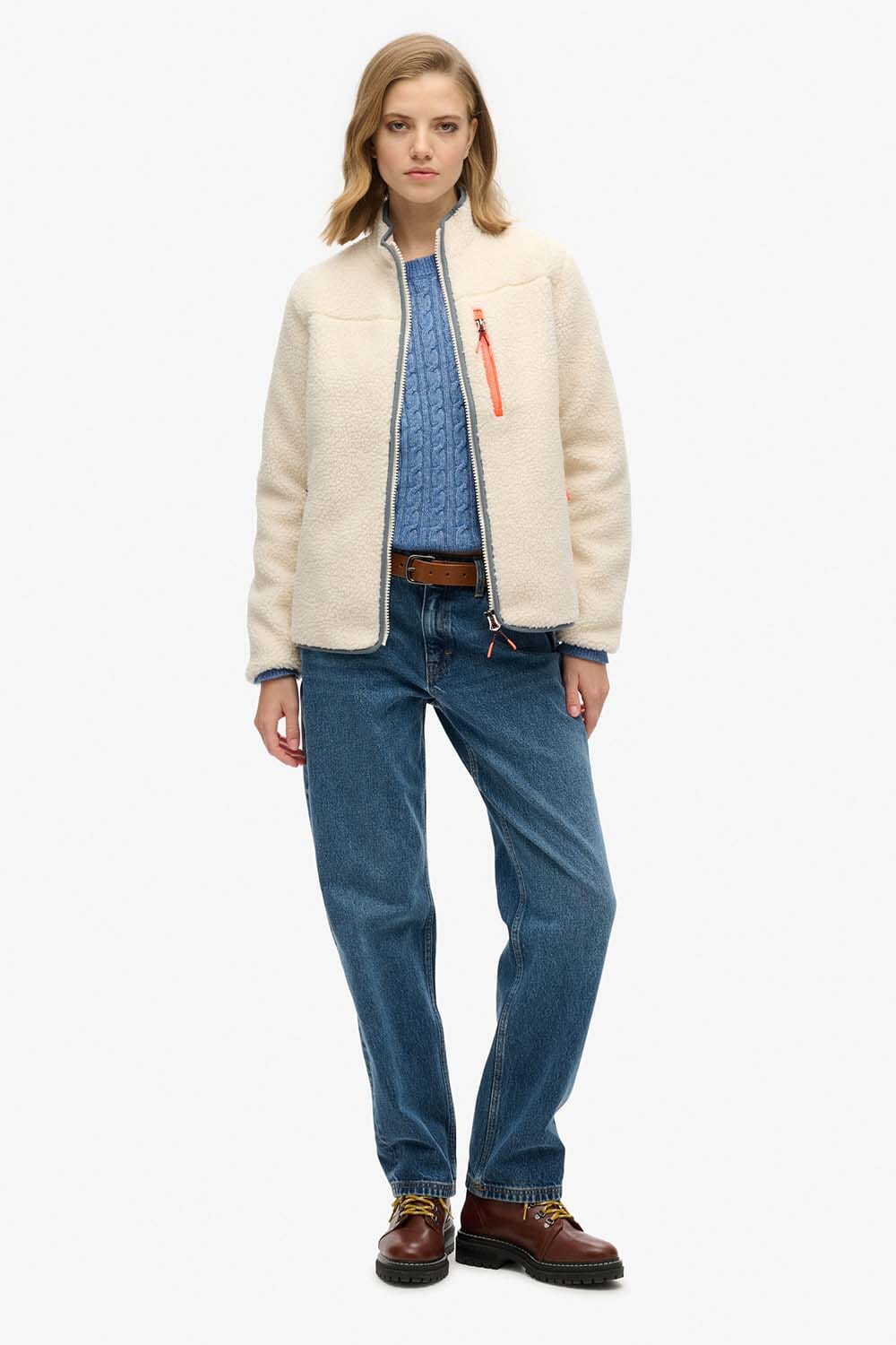 Jas van Superdry, een casual dames teddy jas met rits. Deze tussenjas biedt een stijlvolle en warme uitstraling, ideaal voor verschillende gelegenheden. De zachte textuur en praktische zakken zorgen voor comfort en functionaliteit, terwijl de opvallende ritssluitingen een trendy detail toevoegen.