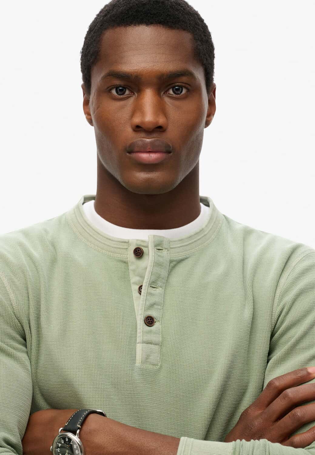 De Longsleeve Grandad van Superdry is een heren longsleeve met een effen patroon en regular pasvorm. De ribgebreide mouwboorden en knopen zorgen voor een stijlvolle afwerking, terwijl de lange mouwen en comfortabele stof ideaal zijn voor elke gelegenheid.