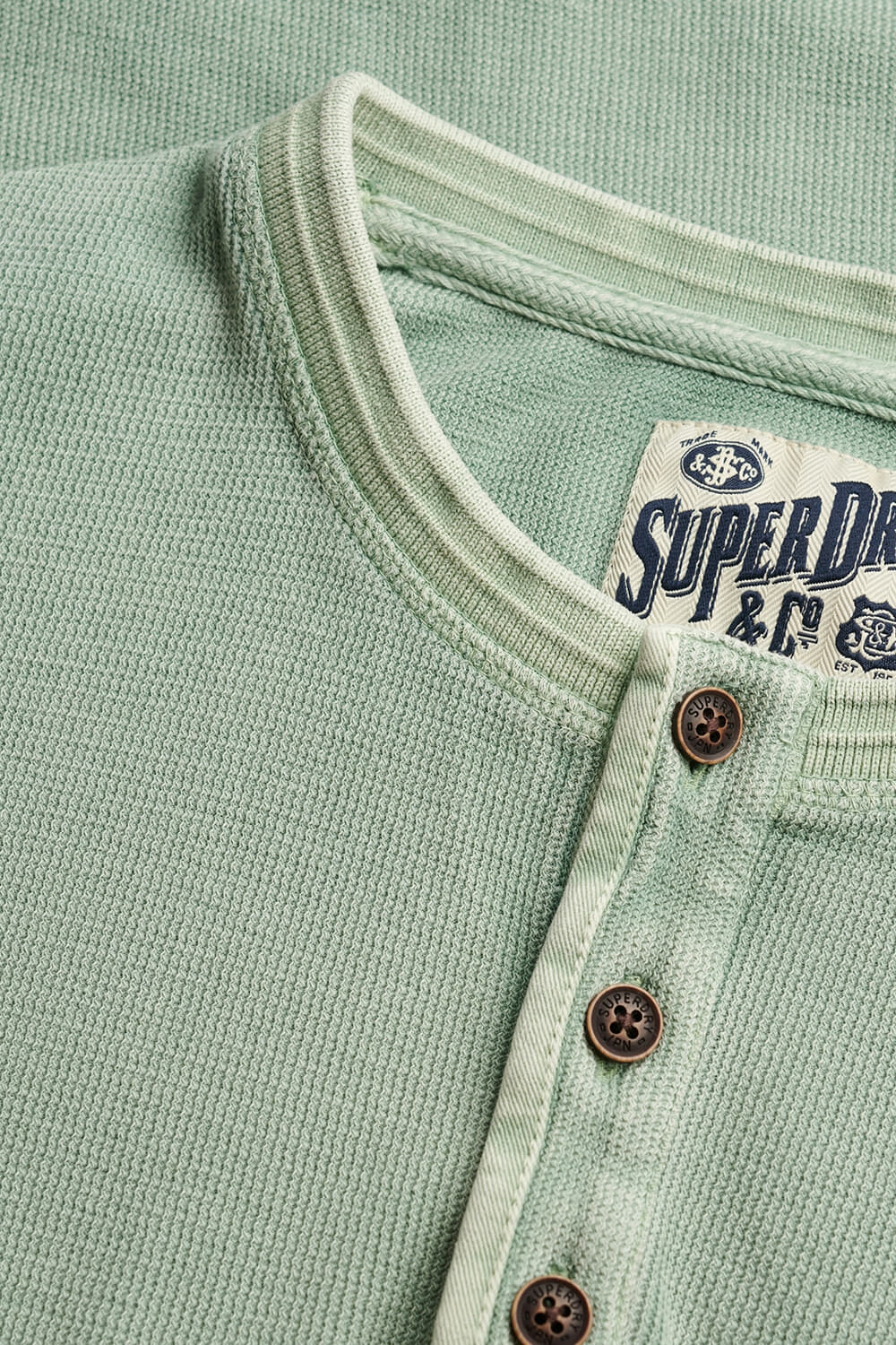 De Longsleeve grandad textured van Superdry combineert een casual stijl met een stijlvolle afwerking. Deze longsleeve heeft manchetten met knopen en een ronde hals, terwijl de knopen voor een elegante sluiting zorgen. Het effen patroon maakt het veelzijdig voor elke casual gelegenheid.