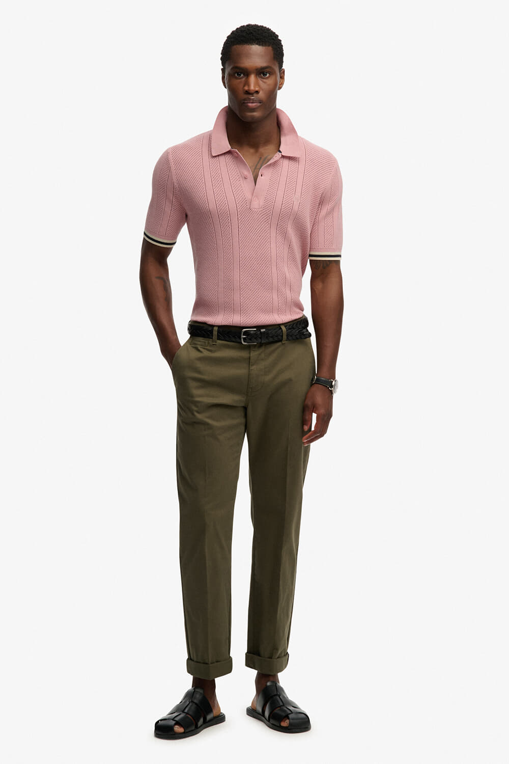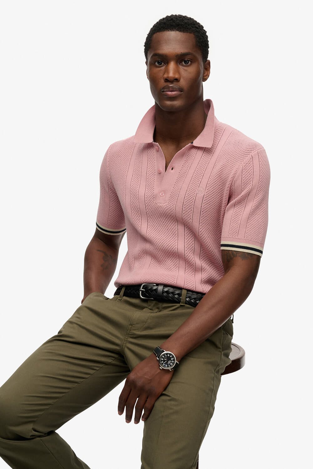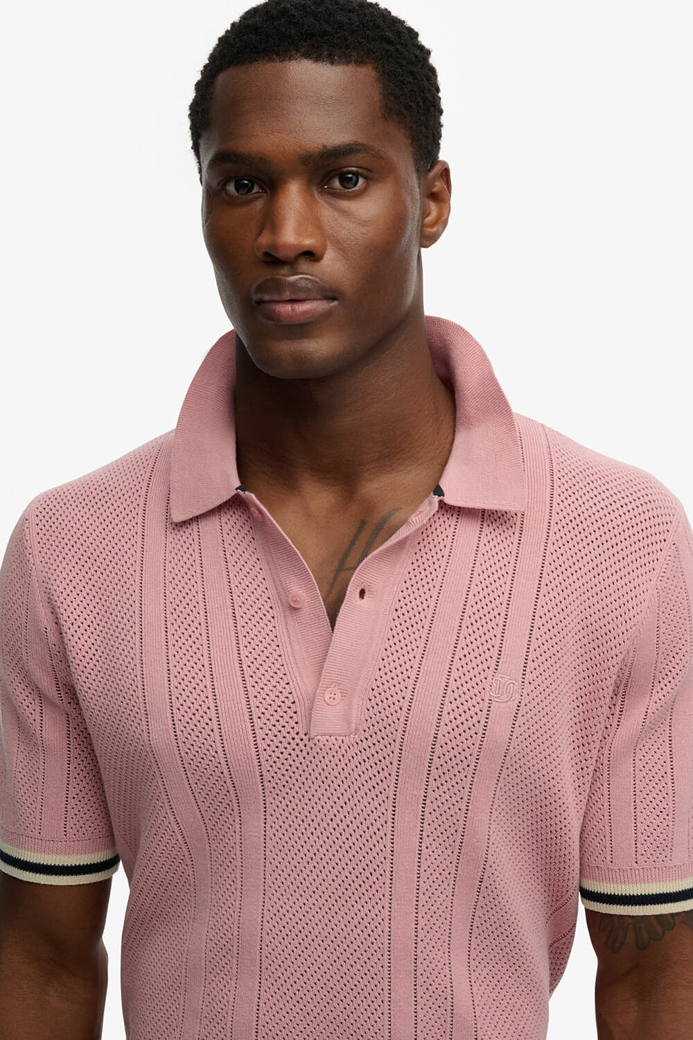 Ontdek de Polo Knitted Texture van Superdry, een casual herenpolo met opstaande polokraag en korte mouwen. Het effen ontwerp biedt een ontspannen pasvorm, ideaal voor alledaagse gelegenheden. De subtiele details maken deze polo een stijlvolle keuze voor elke casual setting.