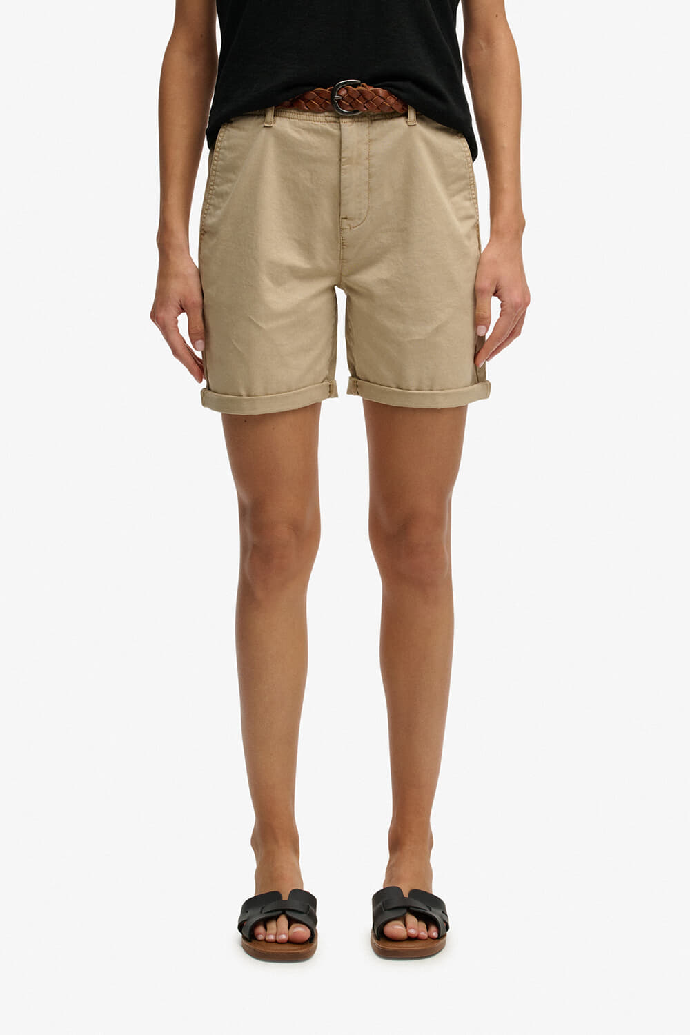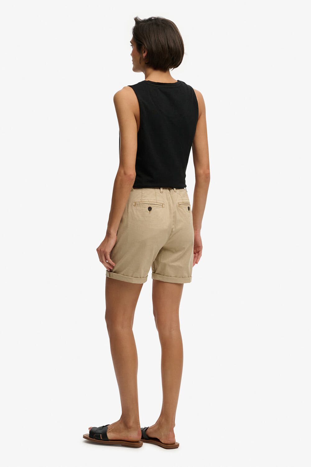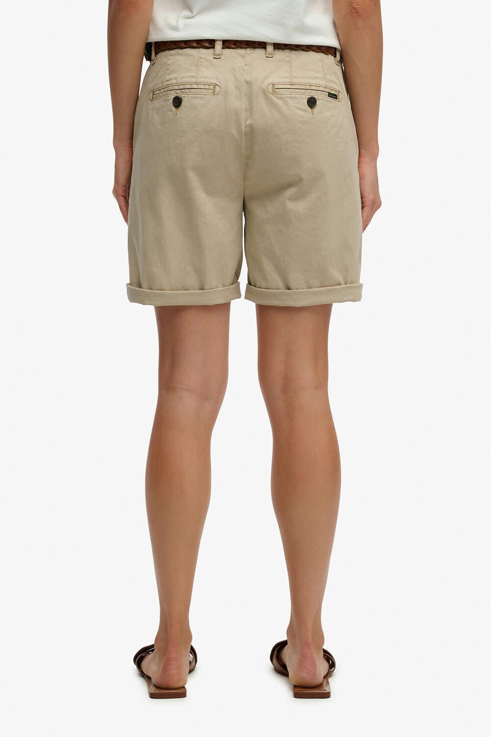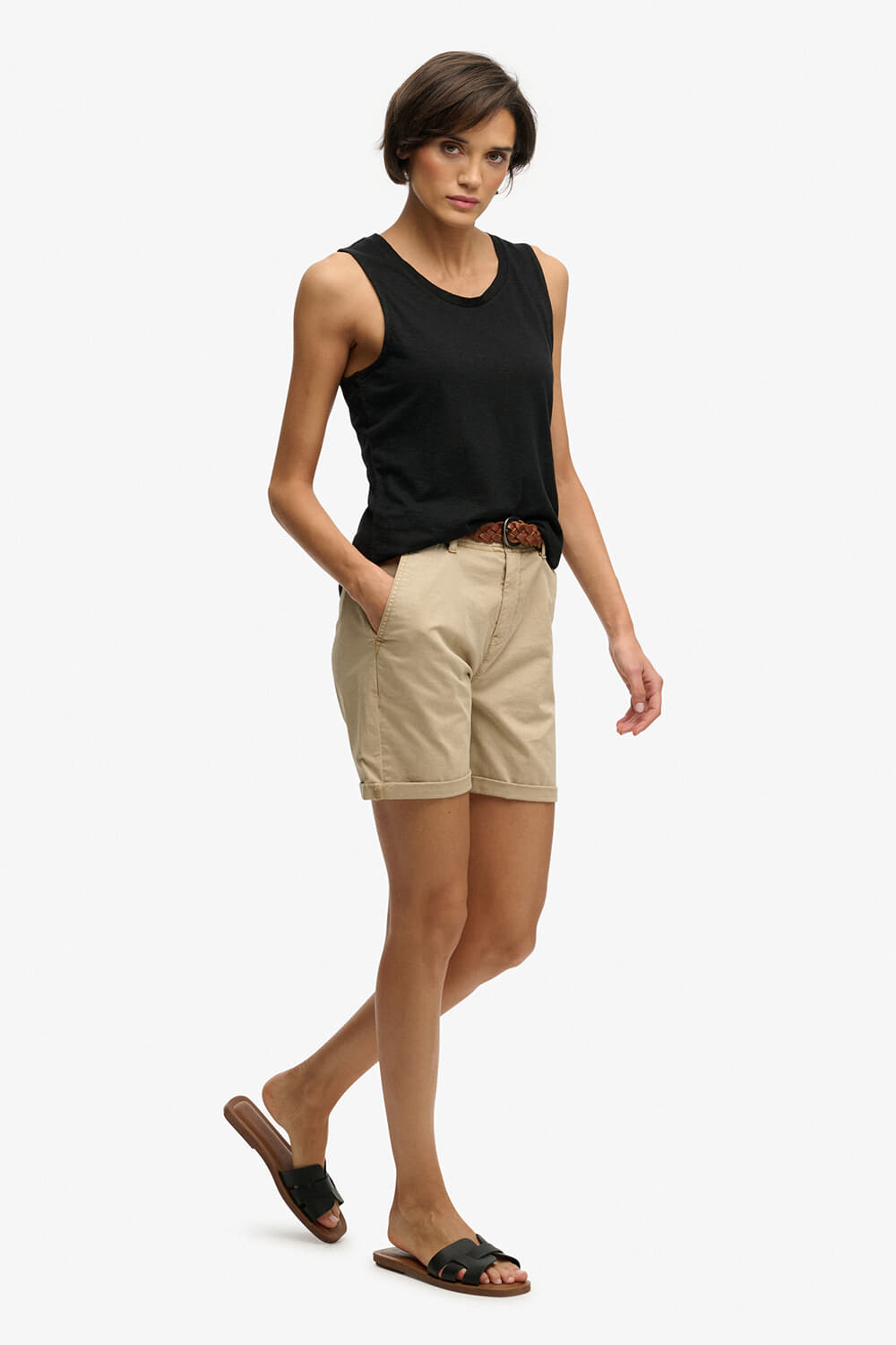 De Short chino van Superdry is een casual dames short met een relaxed pasvorm. Voorzien van zakken op de voor- en achterzijde, biedt deze effen short zowel comfort als functionaliteit. Ideaal voor een zorgeloze dag, zonder mouwen voor een luchtig gevoel.