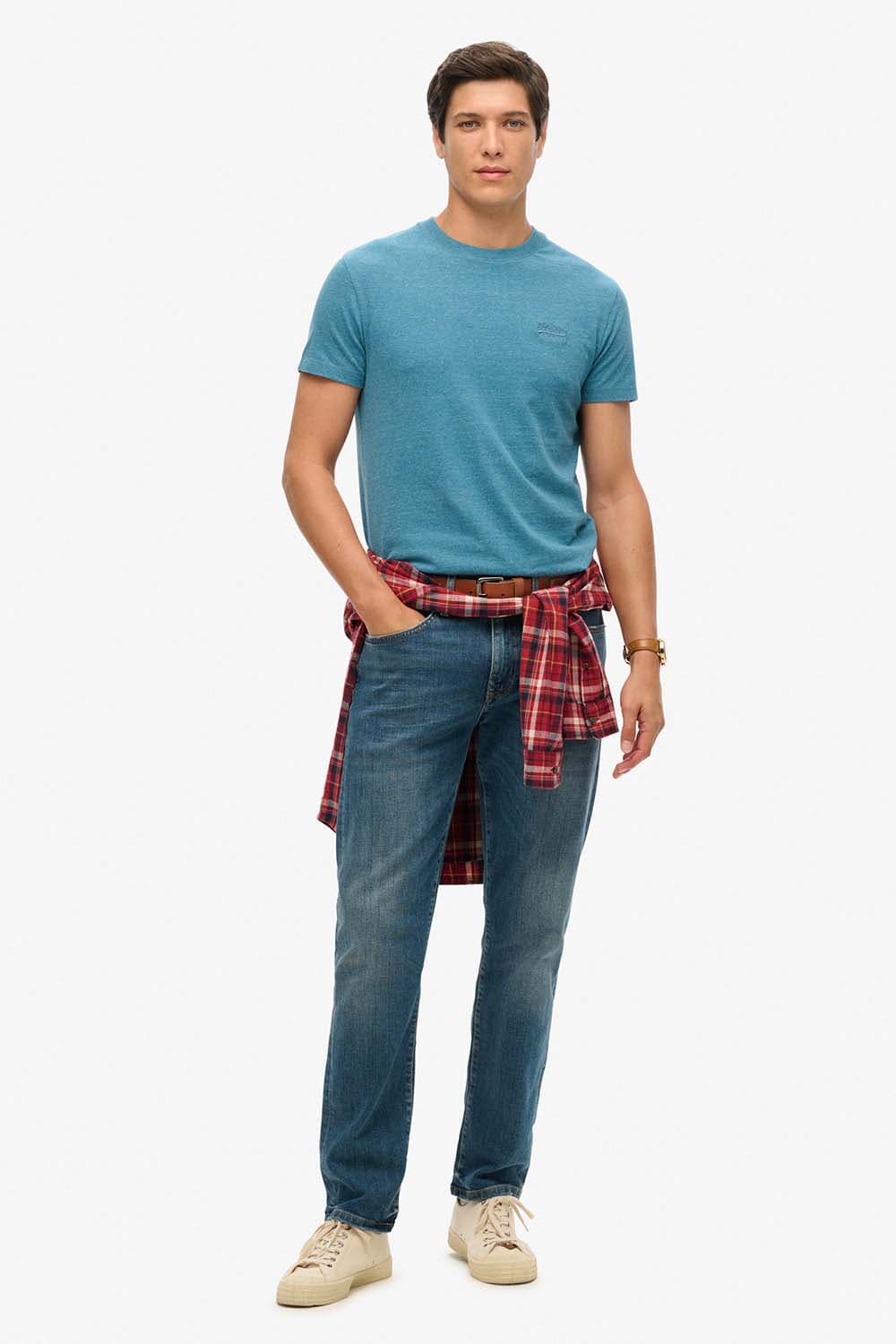 T-Shirt Essential Logo van Superdry is een t-shirt met ronde hals, korte mouwen en een effen, gemêleerde uitstraling. Het subtiele logo op de borst geeft een rustige finish. De rechte pasvorm draagt comfortabel en combineert makkelijk met jeans, of met een overshirt voor extra laagjes.