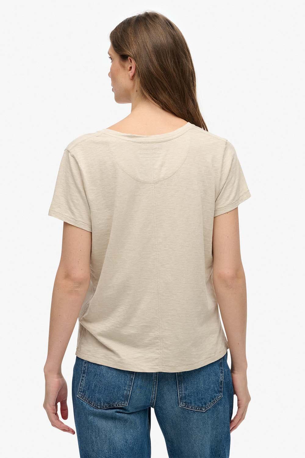 T-shirt Slub van Superdry is een casual dames T-shirt met een V-hals en korte mouwen. Het effen patroon maakt het veelzijdig voor elke gelegenheid. Gemaakt van hoogwaardige materialen, biedt het comfort en stijl, perfect voor een ontspannen dagje uit.