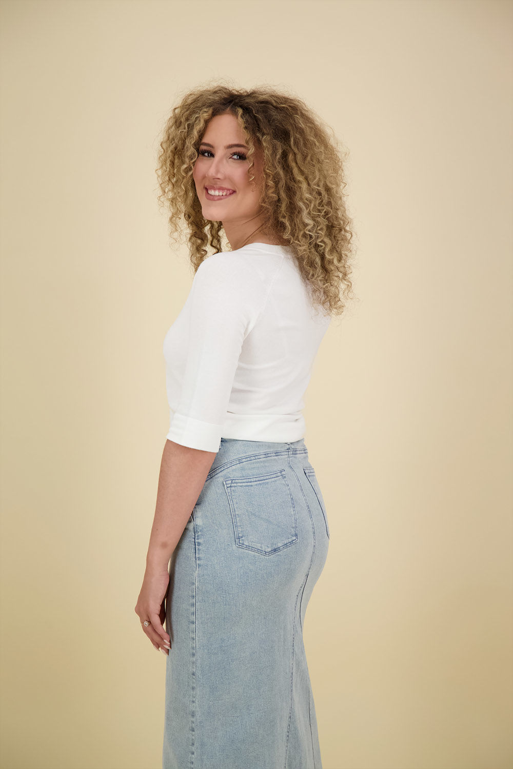 Afmetingen Isabelle is 173 cm lang en draagt maat S
