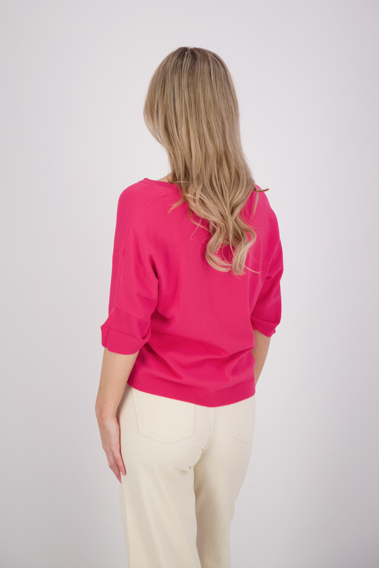 Trui Pylos van The Clothed is een trui met V-hals in minimalistische, casual stijl. De losse pasvorm, korte mouwen met omslag en effen afwerking geven een rustige uitstraling. Zonder sluiting, makkelijk aan te schuiven, geschikt voor casual en nette momenten.
