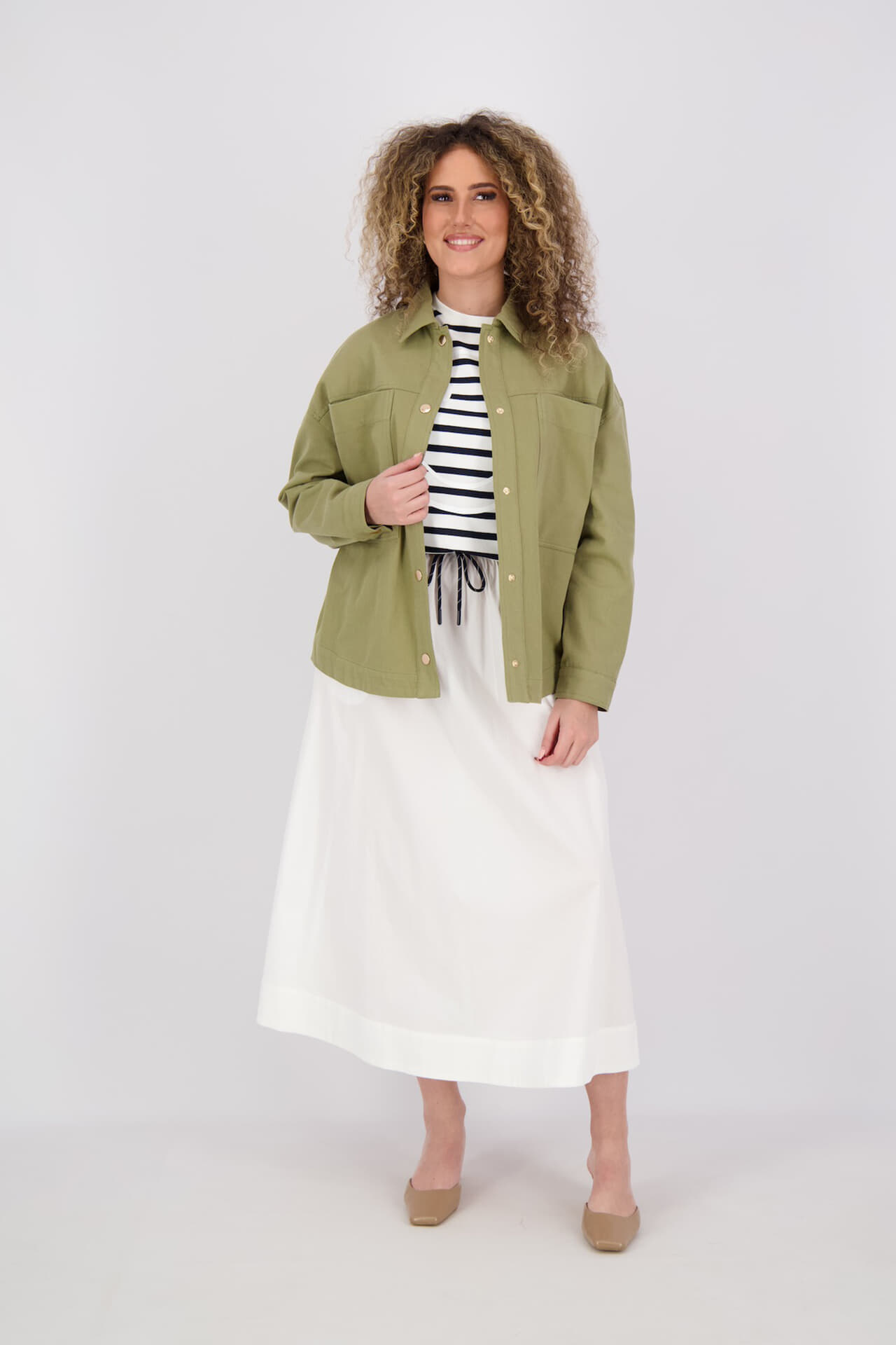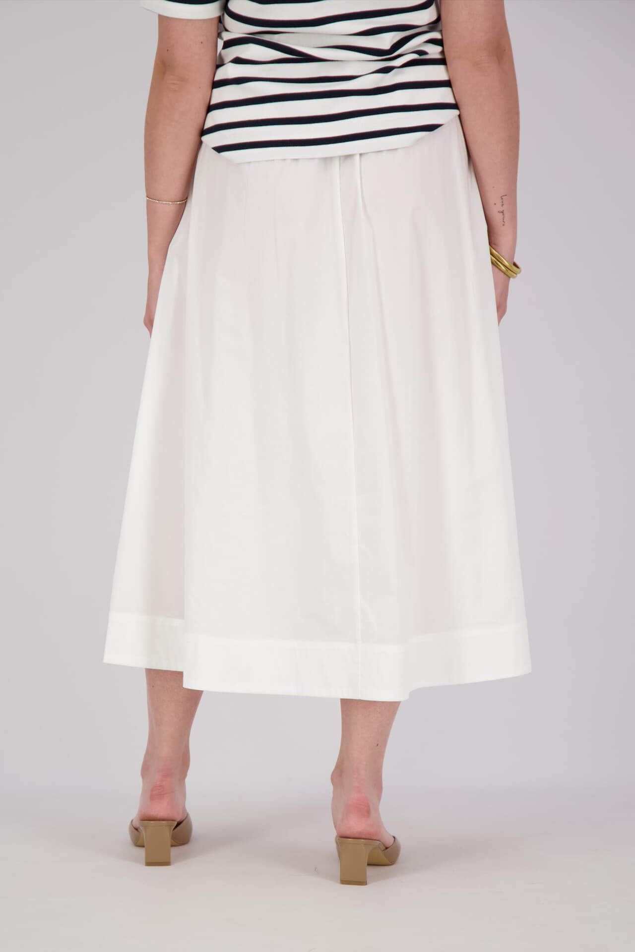 Rok van The Shirt Project met midi lengte, effen wit en een casual, minimalistische uitstraling. De elastische taille zit prettig, het koord zorgt voor een verstelbare sluiting, en de soepel vallende stof geeft fijne bewegingsvrijheid voor elke dag.