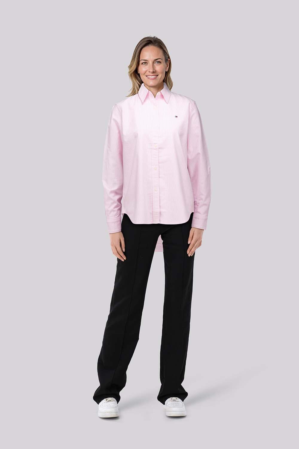 Blouse Oxford van Tommy Hilfiger heeft een regular pasvorm, een spreidkraag met overhemdkraag en lange mouwen met manchetten met knopen. Het fijne streeppatroon en de knoopsluiting geven een nette, casual uitstraling. Combineer met een pantalon of jeans voor een verzorgde set.
