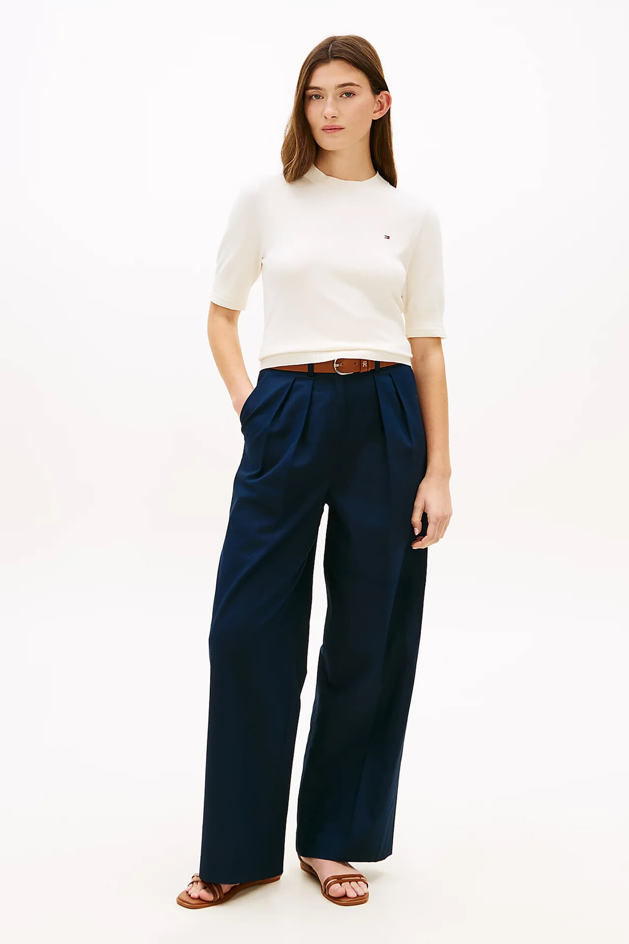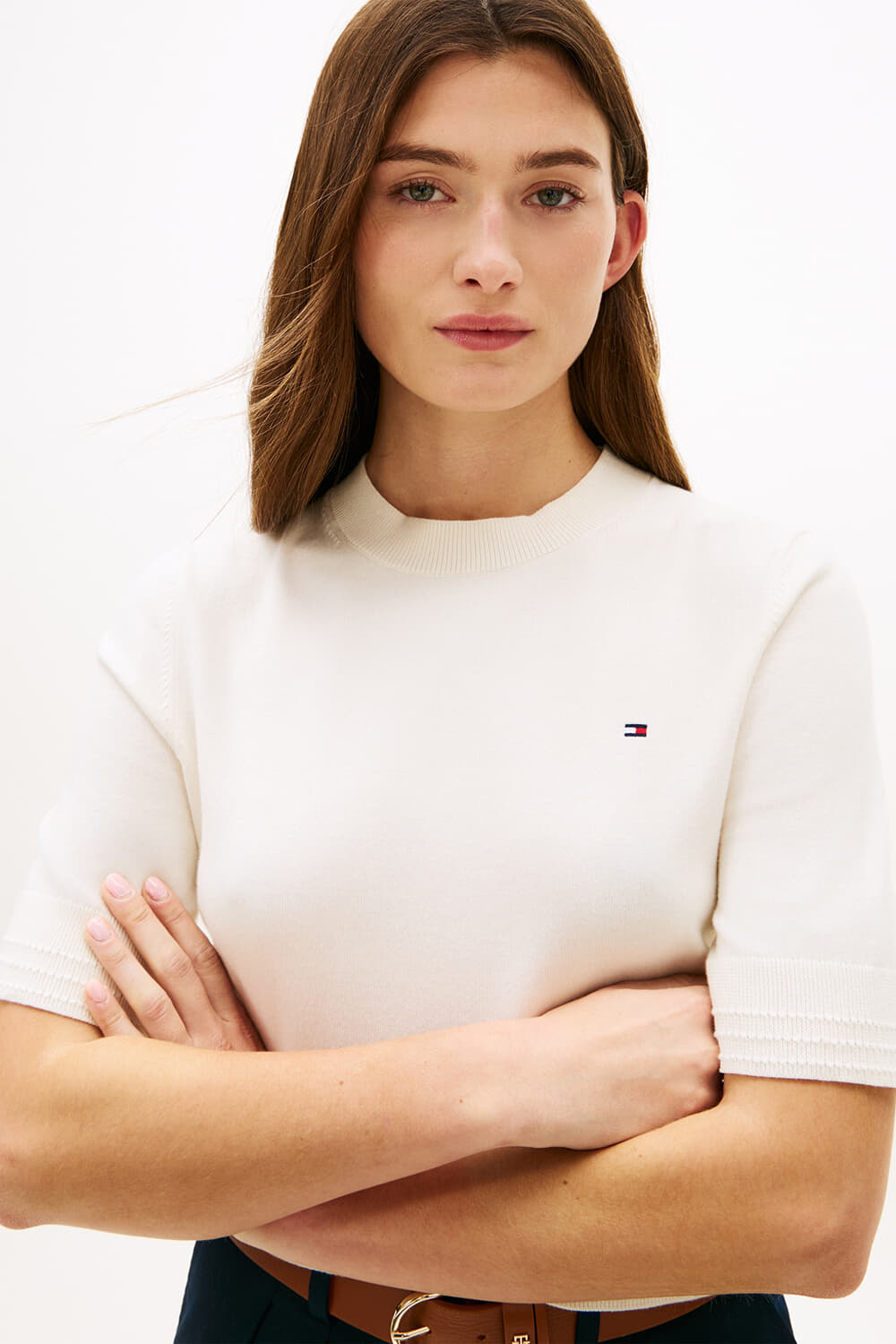 Trui van Tommy Hilfiger, trui, met ronde hals, regular pasvorm en korte mouwen. De effen, off-white uitvoering heeft een subtiel logo op de borst en een nette, gladde afwerking. Draagt comfortabel en oogt rustig. Combineer met een pantalon of jeans voor casual of netjes.
