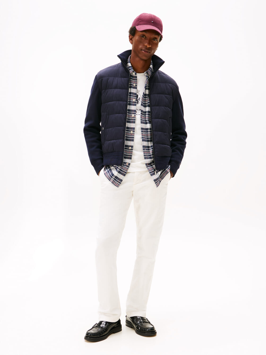 De Gewatteerde Jas DC Mixed Media van Tommy Hilfiger is een stijlvolle heren donsjack met een opstaande kraag en ritssluiting. Dit bomberjack combineert een casual stijl met een regular fit en lange mouwen, ideaal voor dagelijks gebruik.