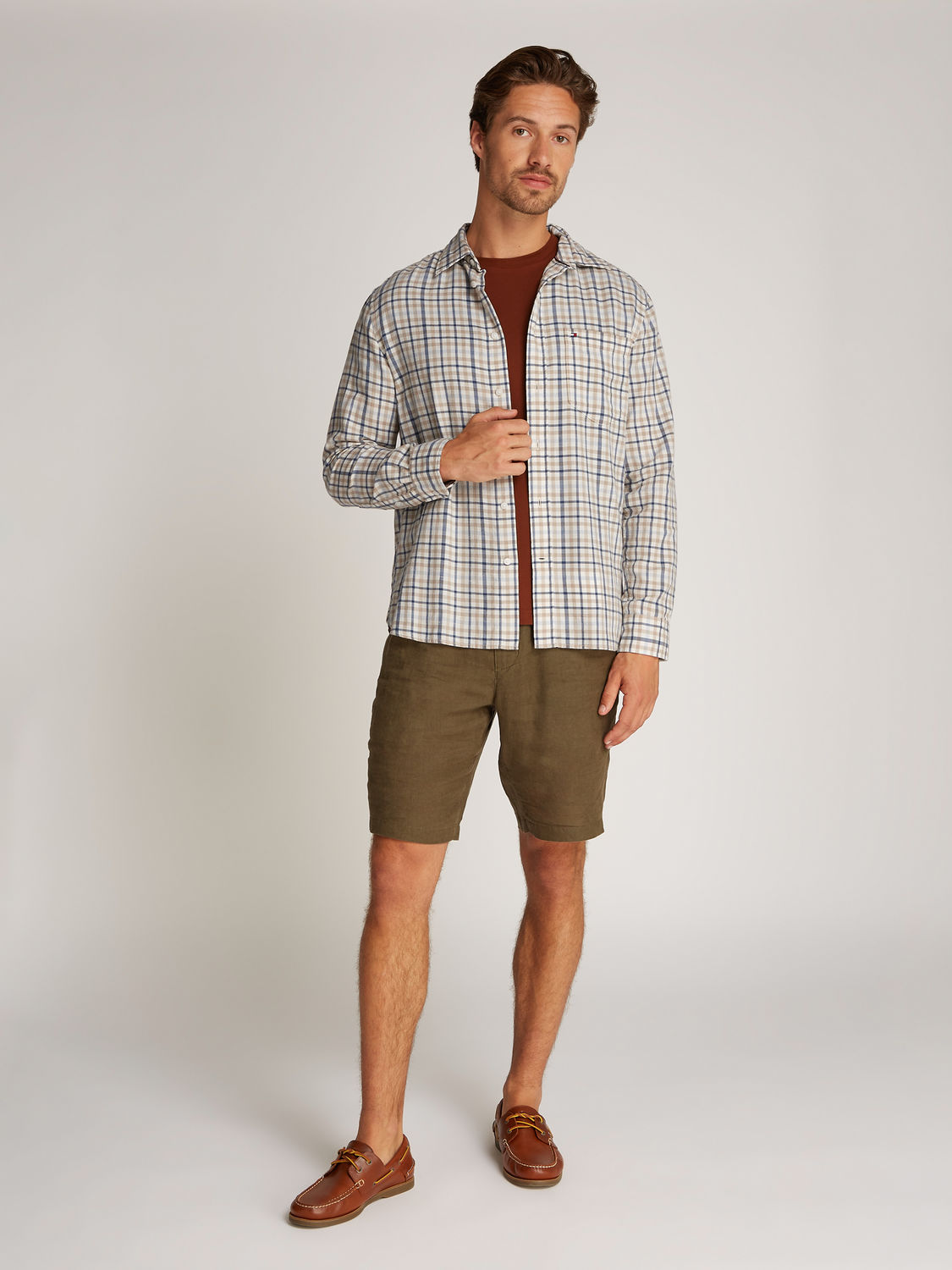 Het brushed linen gingham shirt van Tommy Hilfiger is een casual overhemd met lange mouwen, ideaal voor het voorjaar. Gemaakt van katoen, heeft het een button down kraag, manchetten met knopen, en een ruitpatroon. Perfect voor elke casual gelegenheid.