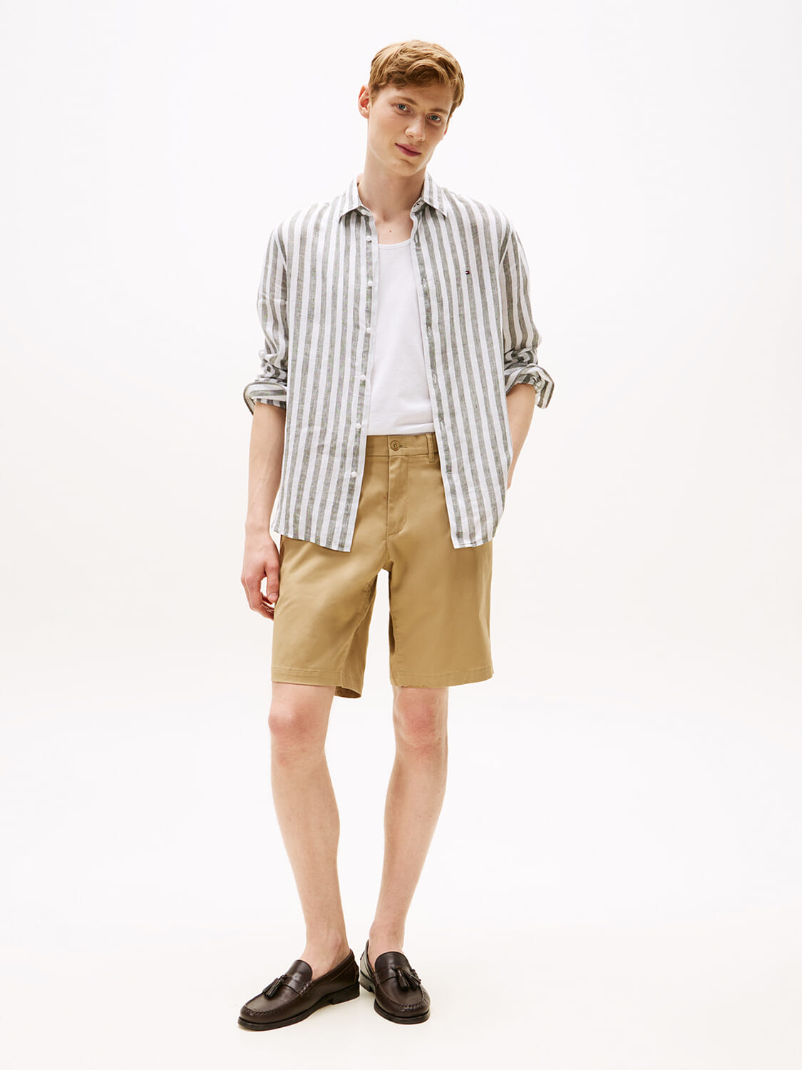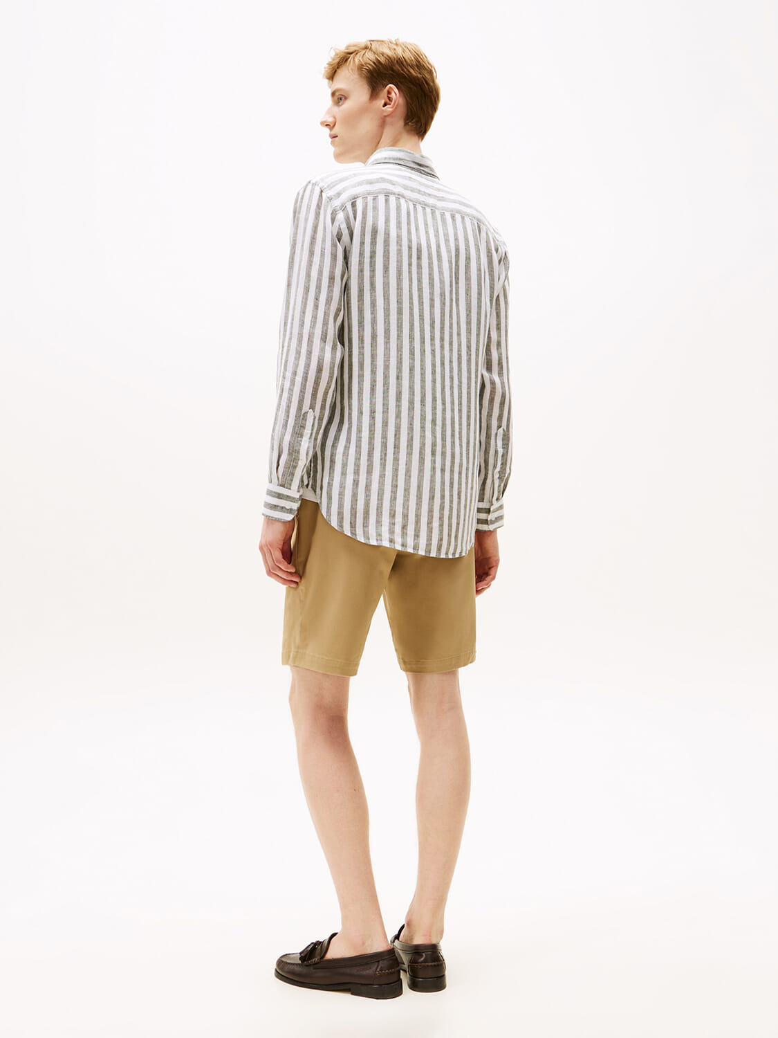 Het overhemd gestreept van Tommy Hilfiger is een casual heren overhemd met een stijlvolle button-down kraag, lange mouwen met knopen aan de manchetten en een opvallend streeppatroon. Perfect voor informele gelegenheden en biedt comfort met zijn soepele sluiting en modieuze uitstraling.