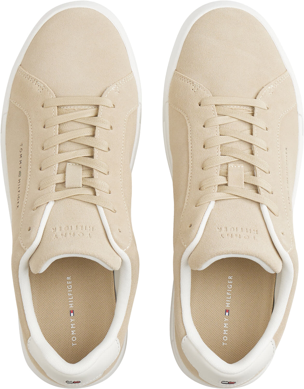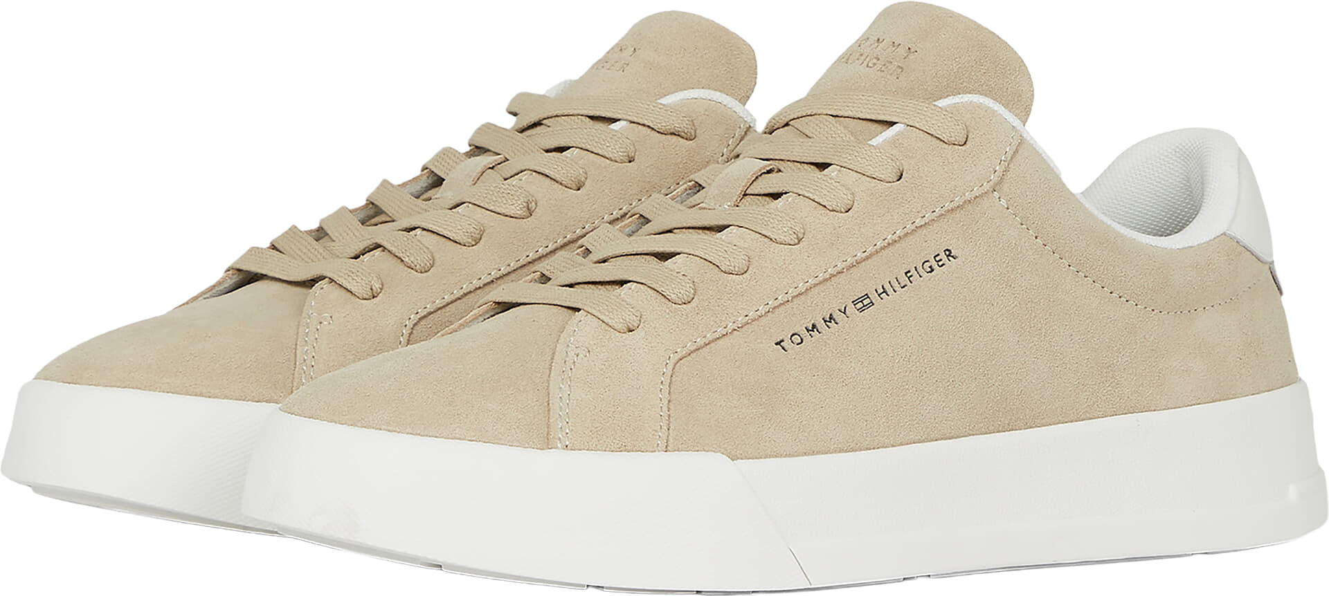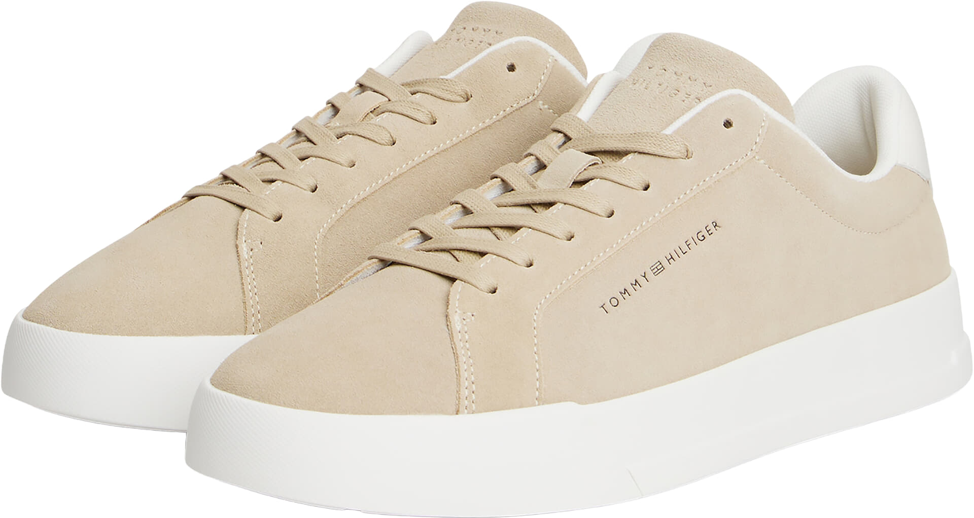 Schoenen TH Logo Court Trainers Suede van Tommy Hilfiger zijn minimalistische schoenen met effen suède bovenwerk en subtiel logo. De dikke, witte rubberzool en het zachte, gevoerde hielstuk geven steun bij elke stap. Combineer met jeans of chino voor een casual, trendy outfit.