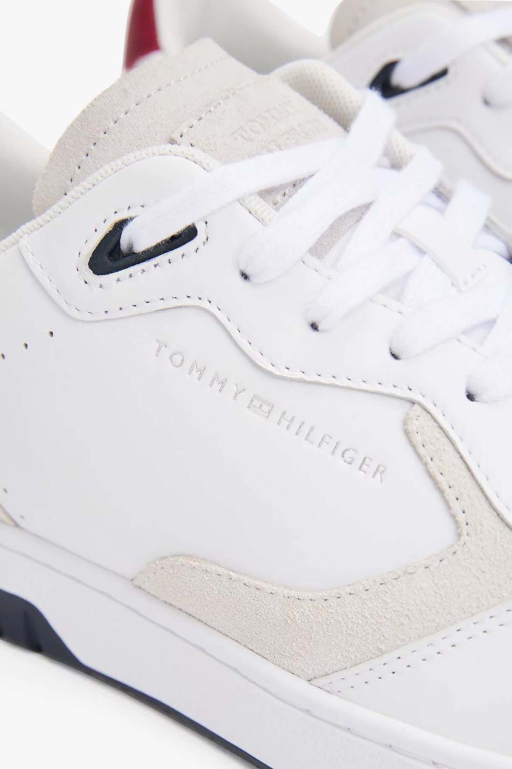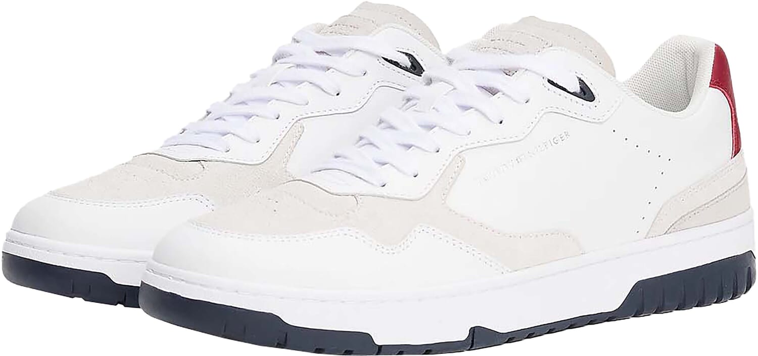De Sneakers Basket Better van Tommy Hilfiger zijn een perfecte keuze voor casual gelegenheden. Deze heren sneakers hebben een effen patroon en bieden een stijlvolle uitstraling met hun strakke witte ontwerp en rode accenten. Ideaal voor een modieuze en comfortabele look.