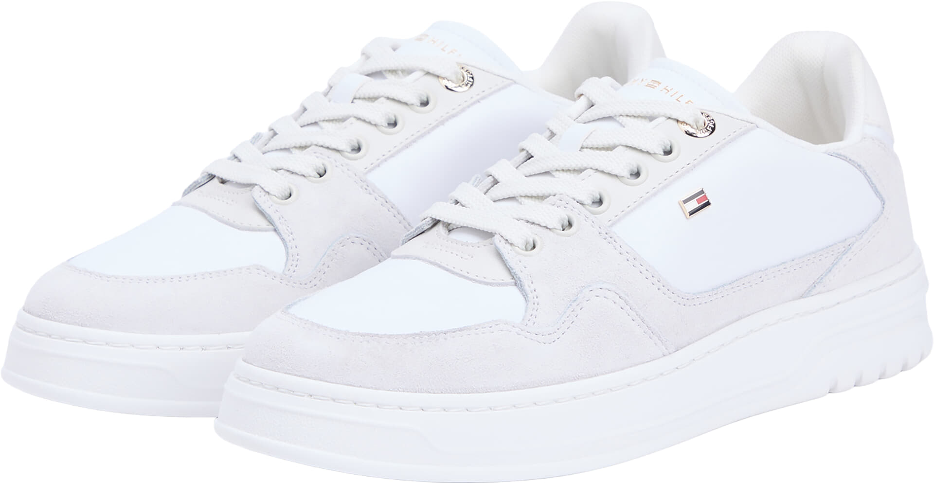 Sneakers TH Court Trainers van Tommy Hilfiger zijn sneakers met een minimalistische, casual uitstraling. Het effen witte bovenwerk met subtiele logo badge, suède accenten en metalen veterogen geeft rustige details. De stevige cupzool biedt grip. Combineer met jeans of een rechte pantalon voor een trendy look.