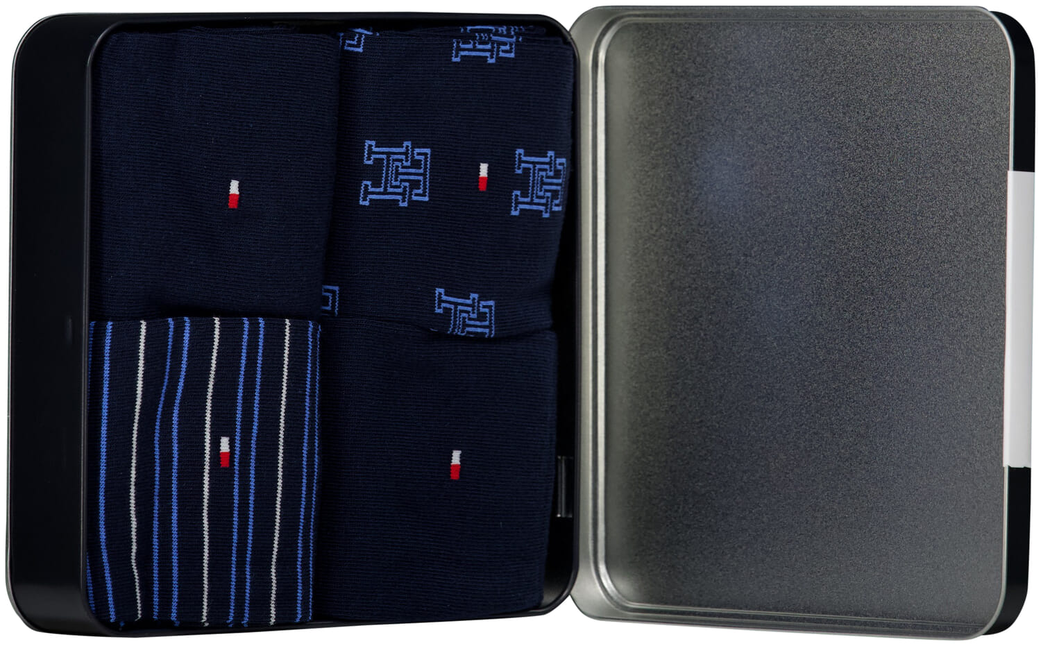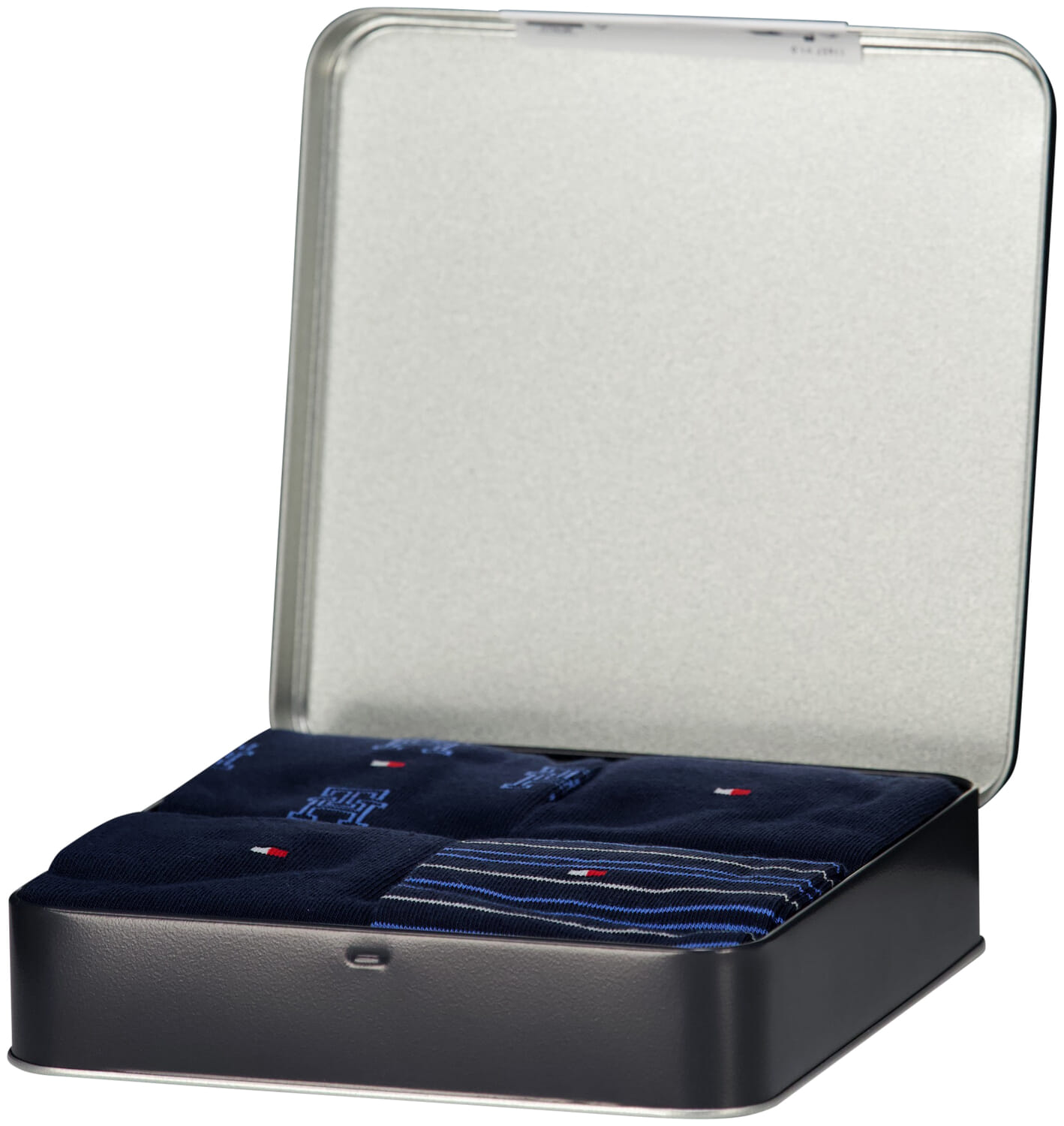 De Sokken 4-Paar Giftbox van Tommy Hilfiger Sok biedt een stijlvolle combinatie van logo en strepen in een casual, verfijnde stijl. Deze heren sokken zijn ideaal voor dagelijks gebruik en zorgen voor een comfortabele en modieuze uitstraling voor elke gelegenheid.