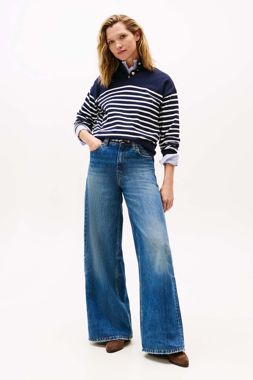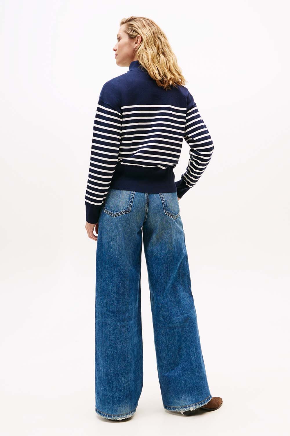 De Tommy Hilfiger sweater is een stijlvolle toevoeging aan elke garderobe. Deze dames trui heeft een casual stijl met een opstaande kraag en een regular fit. De lange mouwen en het streepjespatroon zorgen voor een tijdloze uitstraling die veelzijdig te combineren is.