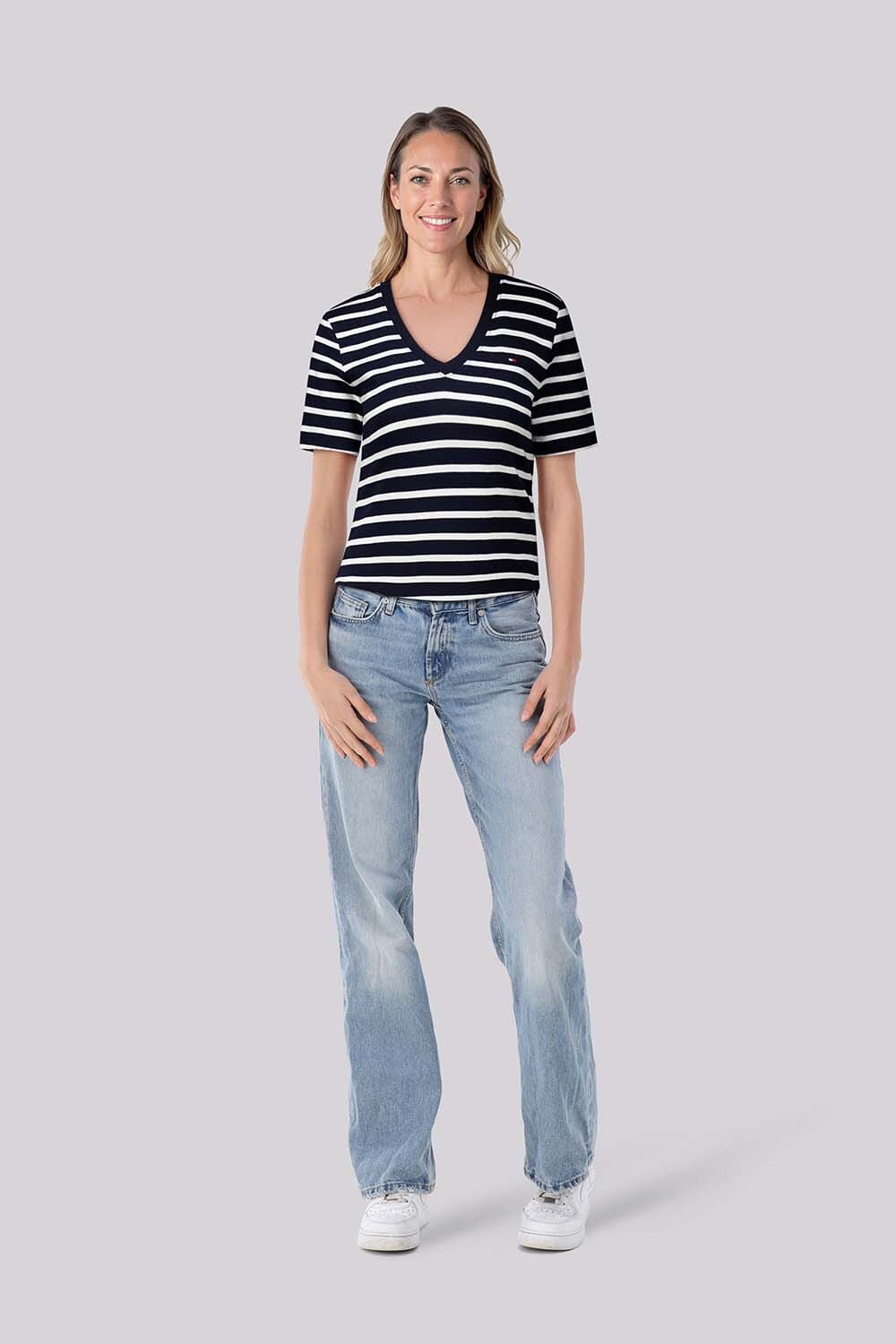 T shirt Cody van Tommy Hilfiger is een casual dames T-shirt met een stijlvolle V-hals en korte mouwen. Dit effen ontwerp biedt een tijdloze uitstraling, ideaal voor dagelijks gebruik. De kwaliteit en het comfort maken het een onmisbaar item in elke garderobe.