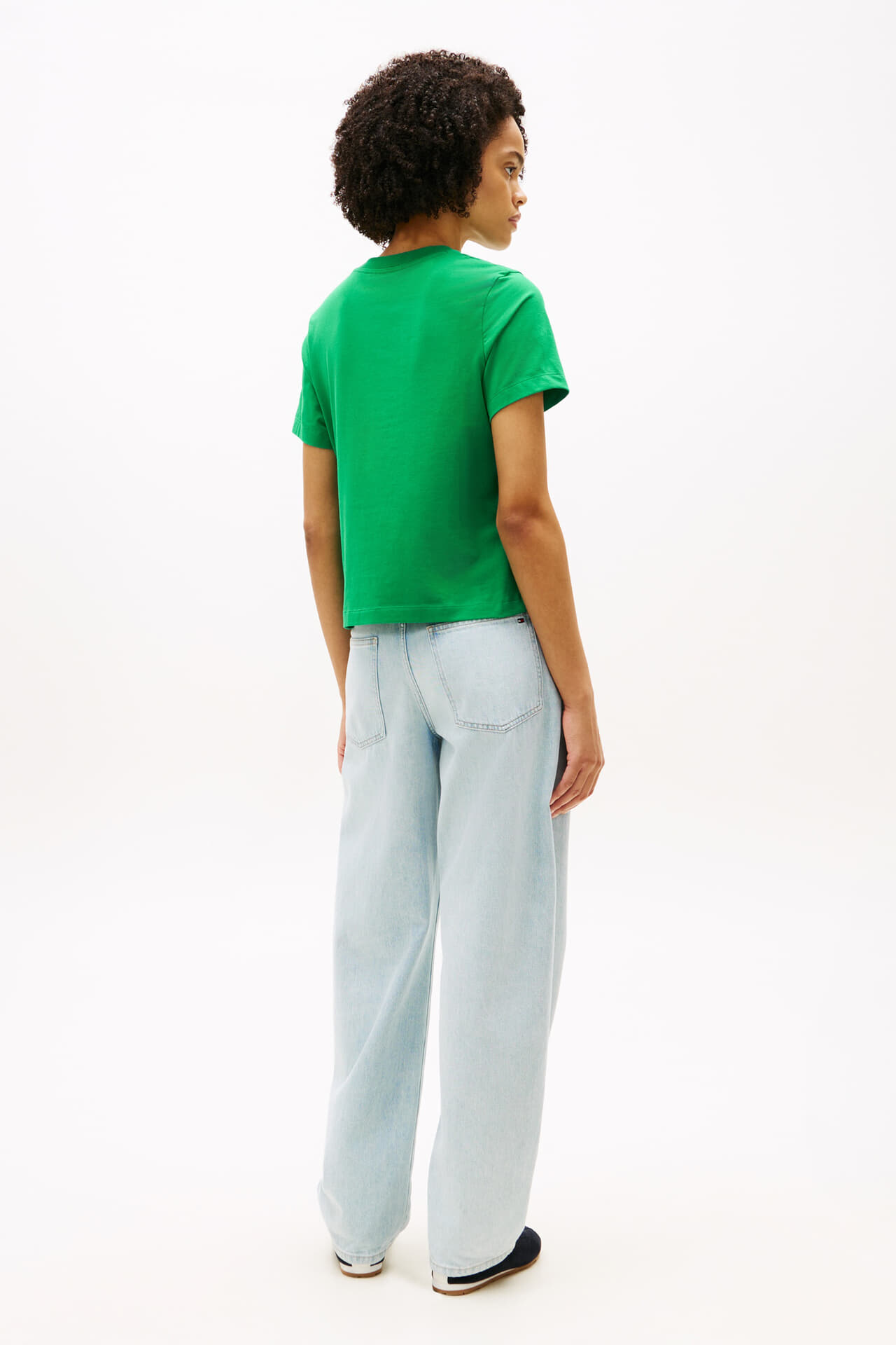 Het T-shirt van Tommy Hilfiger is een casual dames t-shirt met een ronde hals en korte mouwen. Het effen patroon maakt het veelzijdig voor elke gelegenheid. Gemaakt van hoogwaardige materialen, biedt het comfort en stijl, perfect voor een ontspannen, modieuze uitstraling.
