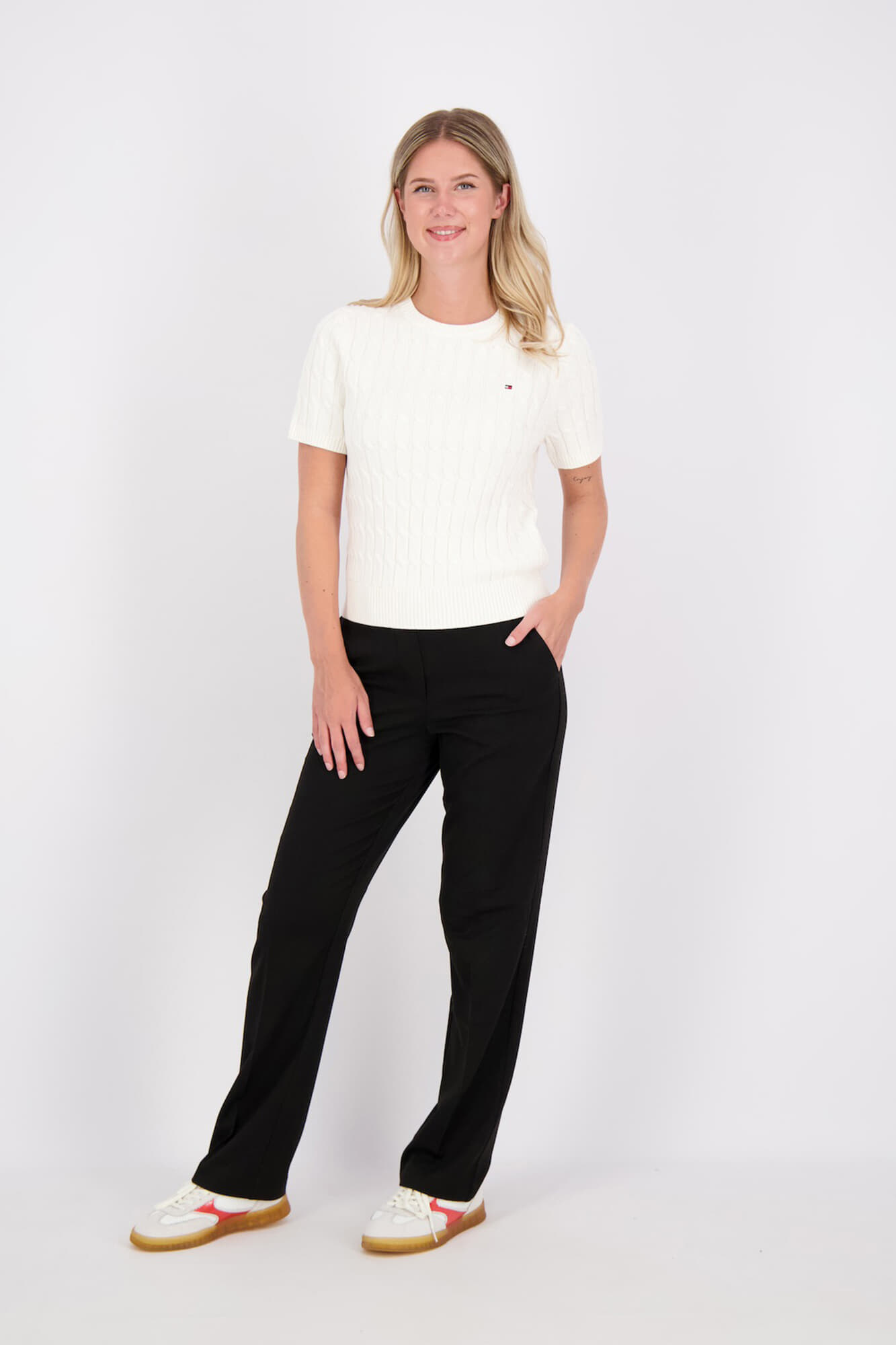 De top van Tommy Hilfiger is een casual top met korte mouwen. Deze dames top heeft een effen patroon en een ribgebreid mouwboord, met een comfortabele ronde halslijn en een regular fit. Perfect voor een stijlvolle en toegankelijke uitstraling.