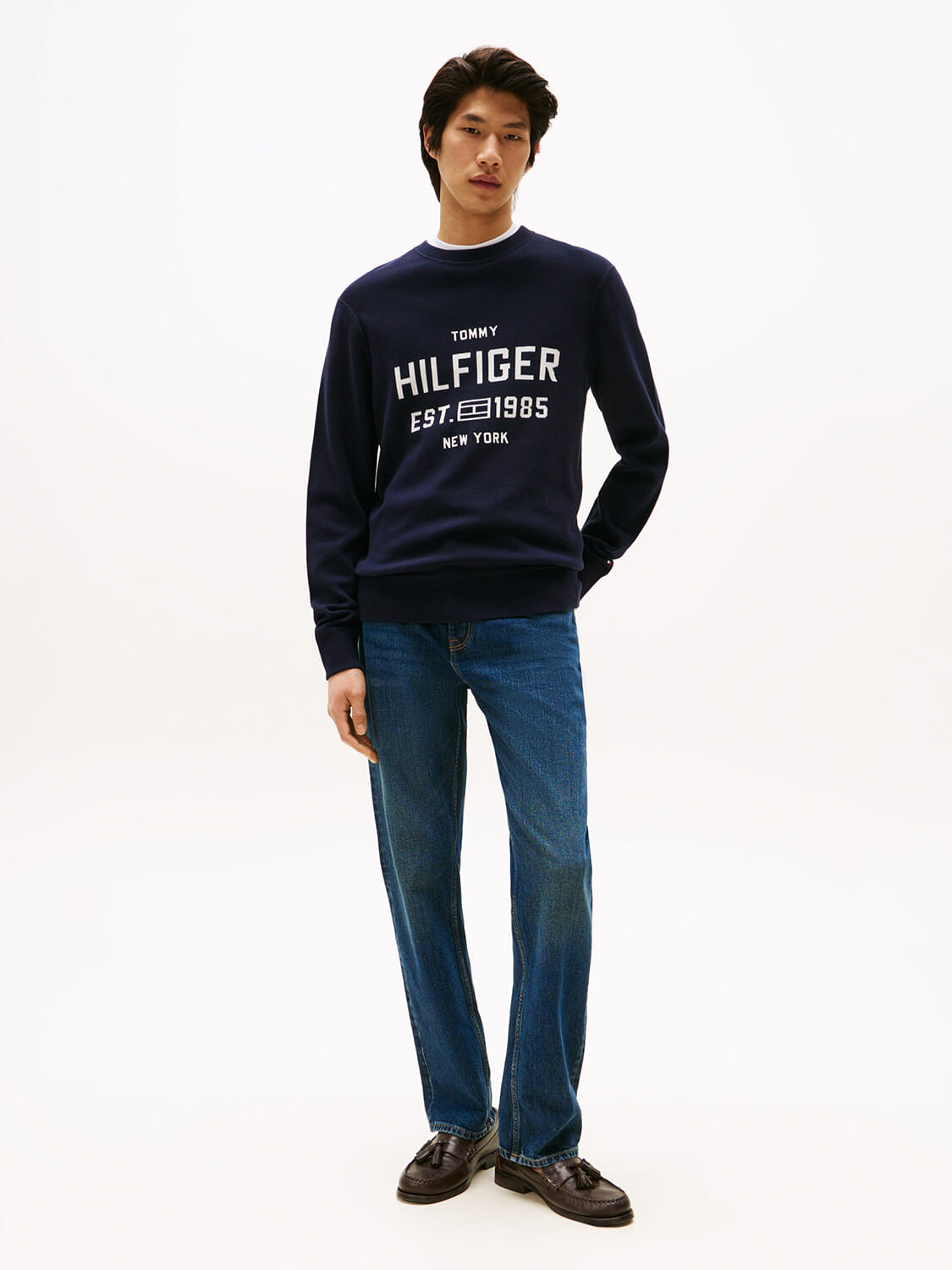 De trui van Tommy Hilfiger, onderdeel van de heren truien, heeft een casual stijl met een ronde hals en ribgebreide mouwboorden. De trui is regular fit en ideaal voor alledaagse gelegenheden. Het opvallende logo op de borst maakt het een modieuze keuze.