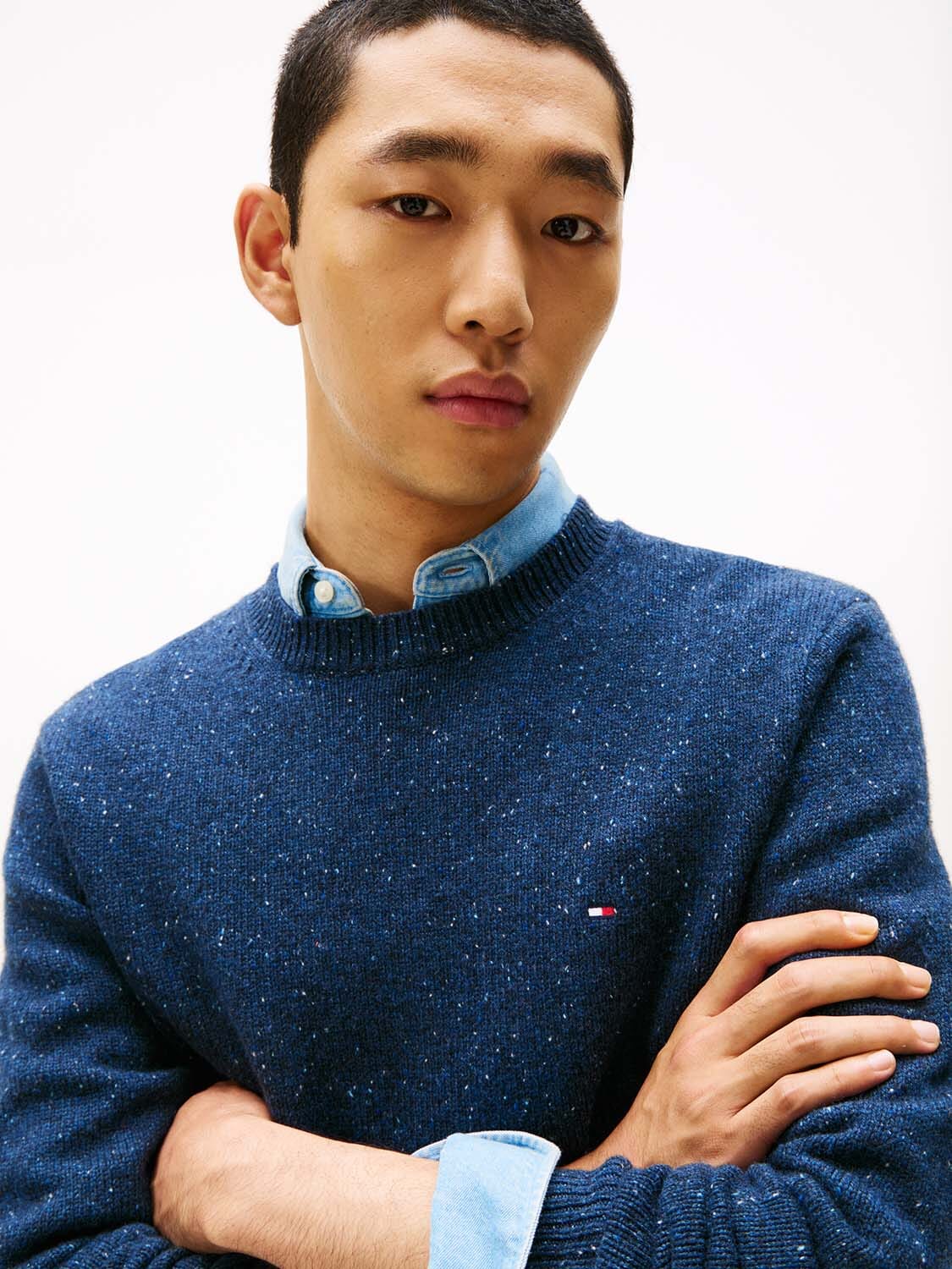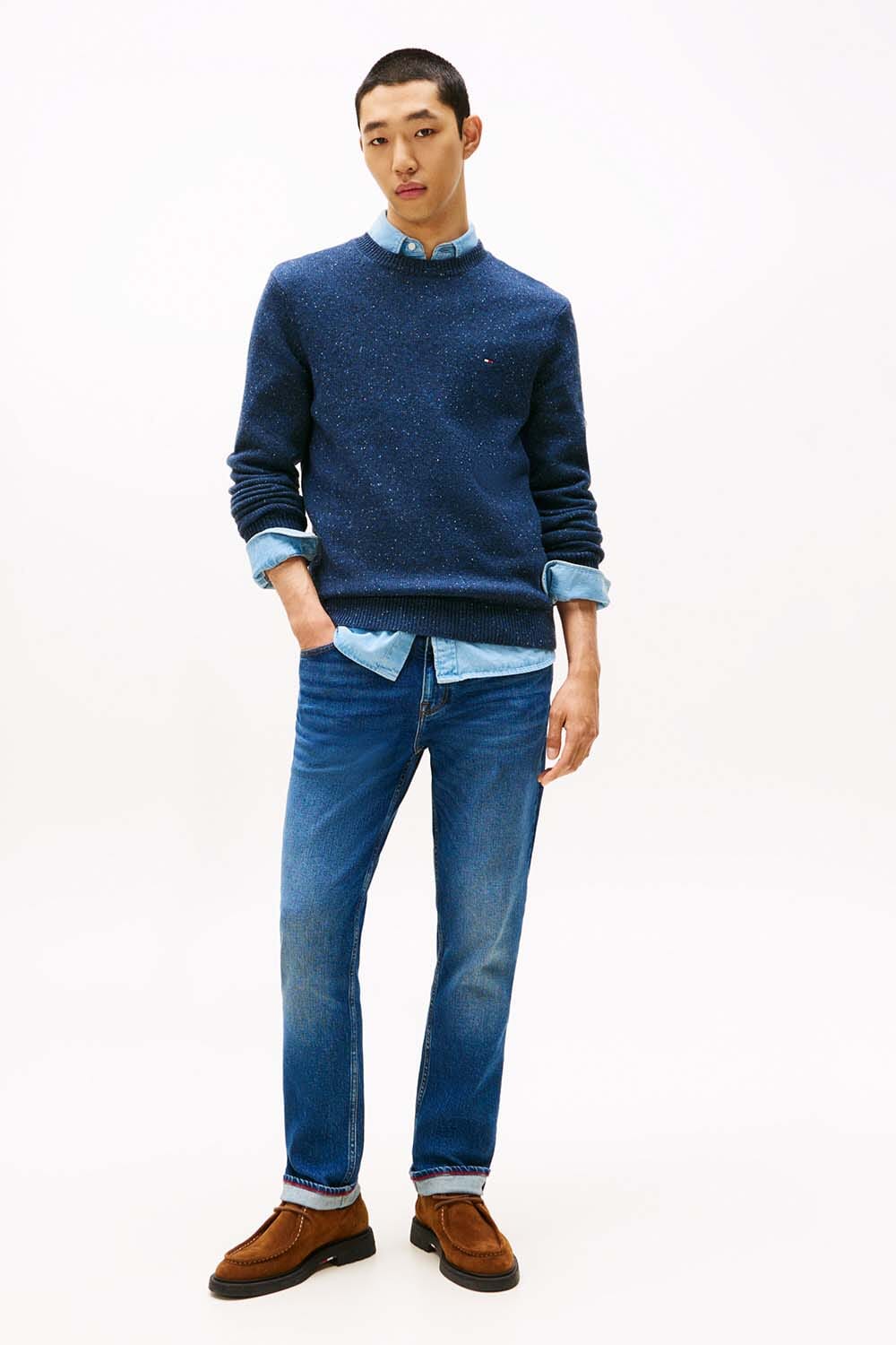 De Trui Donegal Crew Lambswol Blend van Tommy Hilfiger is een stijlvolle heren trui met een minimalistische uitstraling. De ribgebreide mouwboorden en ronde hals zorgen voor een comfortabele pasvorm. Ideaal voor casual gelegenheden, deze effen trui biedt veelzijdige stijl en warmte.