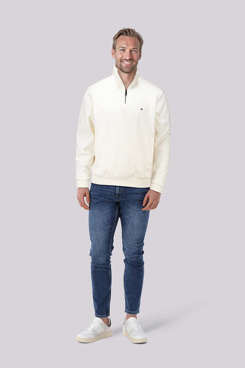 De Gebreide Zip-trui Essential Intechno van Tommy Hilfiger is een casual heren trui met opstaande kraag en ribgebreide mouwboorden. Voorzien van handige zakken en een ritssluiting, biedt deze effen trui een comfortabele pasvorm voor diverse gelegenheden.