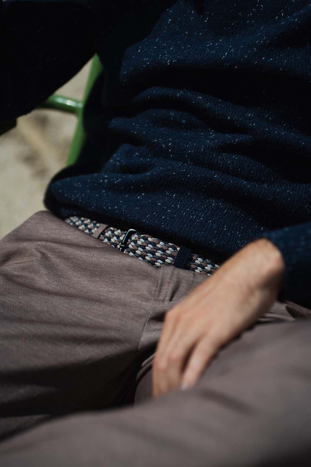 Riem Fossino van Tresanti is een casual heren riem met een klassiek geweven patroon. Deze stijlvolle riem combineert eenvoud en functionaliteit, ideaal voor dagelijks gebruik. Het geweven ontwerp zorgt voor flexibiliteit en comfort, terwijl de subtiele kleuren een veelzijdige toevoeging zijn aan elke outfit.
