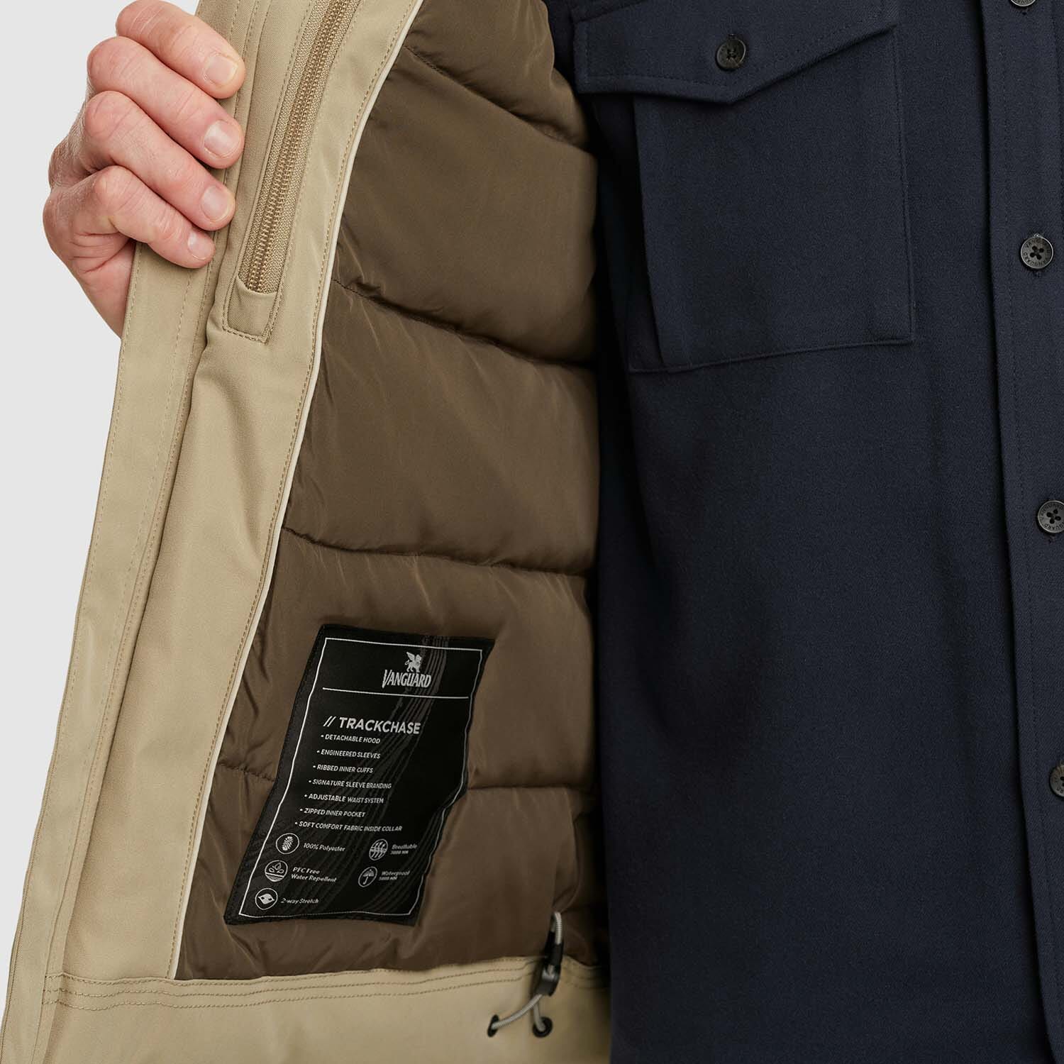 De Bomberjack Trackchase Hi-Twill van Vanguard is een heren bomberjack dat stijl en comfort combineert. Met een capuchon, rits en opstaand boord biedt het een casual en sportieve uitstraling. Voorzien van zakken op de voorzijde en lange mouwen, ideaal voor dagelijkse avonturen.